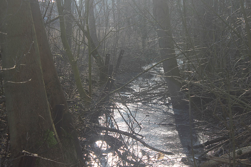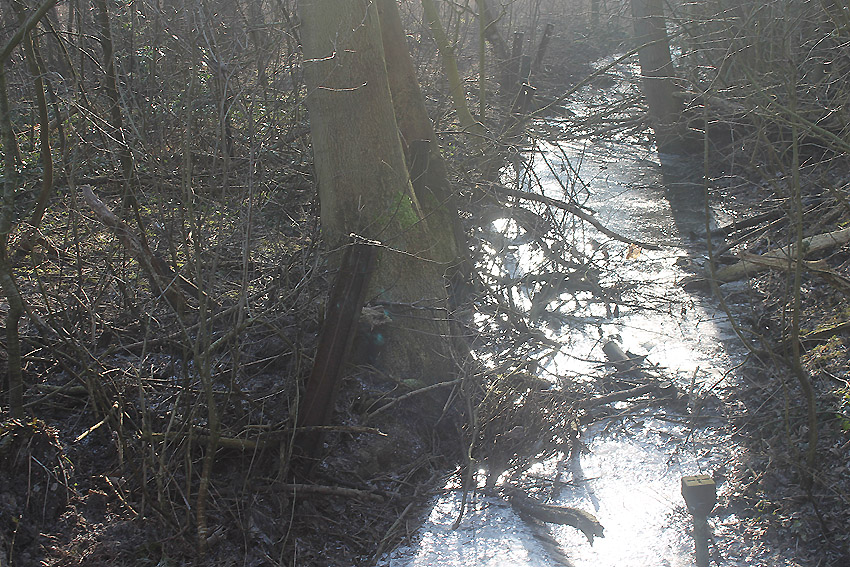Nachtrag 09.02.18: Weitere Trümmerstücke am Fortgraben und alte Zaunreste. Die Stahlklappe mitsamt Schacht liegt in einer Linie mit dem Stichgraben zur Maade und dem Fortgraben. In diesem Bereich müsste eigentlich auch die neuzeitige Pipeline der NWO durch den Maadebogen / Fort Schaar führen. Damit hängt der historische Schacht aber keinesfalls zusammen.