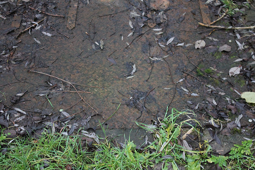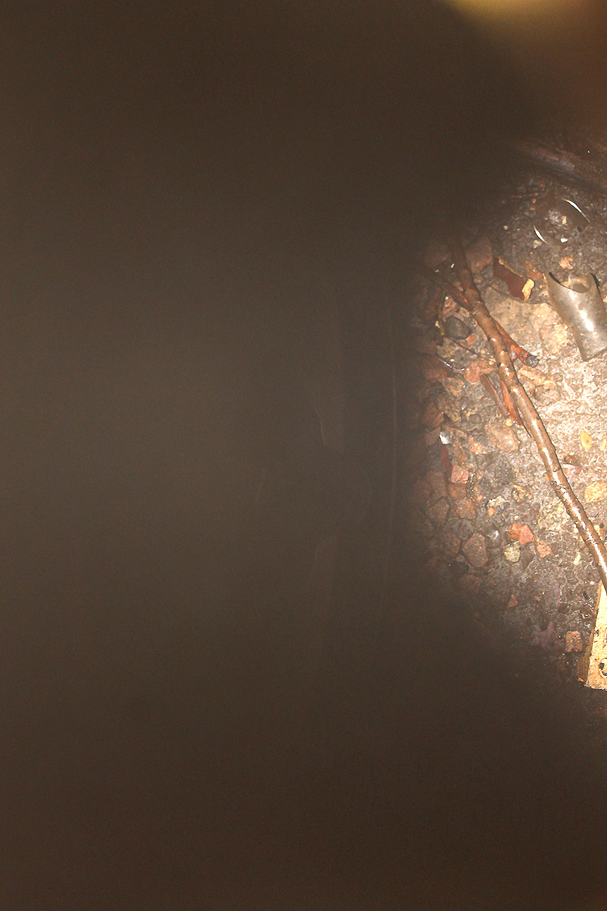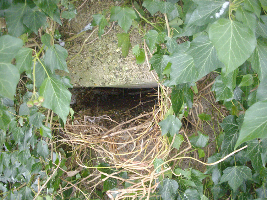 Nachtrag 09.01.18: Das Innere zeigt einen Schacht mit einer Art Schieber am Boden. Vom Fortgraben her ist ein Zufluß vorhanden, dieser ist mit Gestein, usw. verstopft. Wahrscheinlich nachträglich verstopft, um eine Verringerung des Wasserstandes des alten Fortgrabens bei Niedrigwasser der Maade / bei Schieberöffnung zu verhindern. Zur nahen Maade hin befindet sich ein Kanalrohr, im Bild am Pfeil ansatzweise zu erkennen. Hier sollte wohl der Wasserstand vom Fortgraben im Zusammenspiel mit der Maade reguliert werden. Was die Betonquader im Umfeld für einen Zweck hatten, ist allerdings weiterhin ungeklärt.