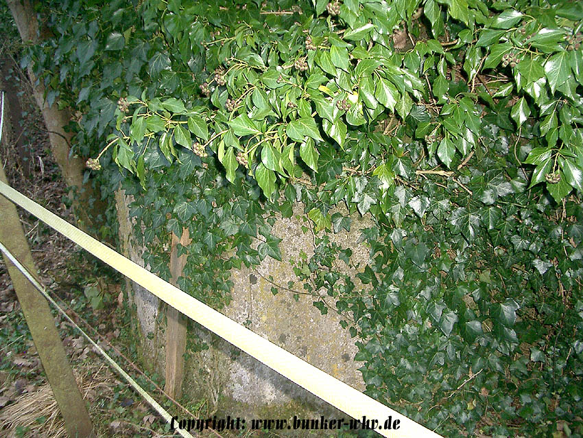 Die Splitterschutzzelle besitzt vier Sichtscharten, eine Stahlluke auf dem Dach, welche mit Steigeisen zu erreichen ist und eine Metallhaltestange neben den Steigeisen bis über das Dach zur Luke.