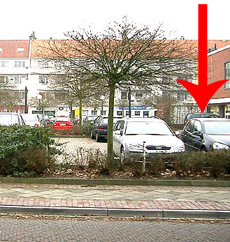 Der ehemalige Bunkerstandort ist heute der südliche (hier rechte) Teil dieses Parkplatzes. Der Bunker stand genau an der Pfeilspitze in Höhe des geparkten Wagens...