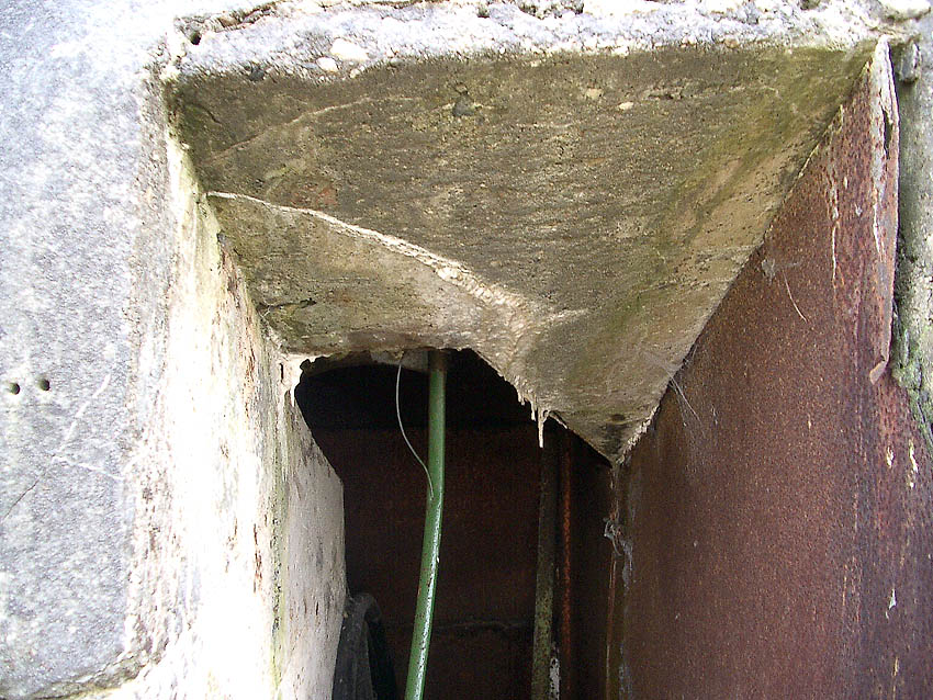 Der südliche Teil des Kleinbunkers ist metallumfasst. Eine Art Verstärkung...