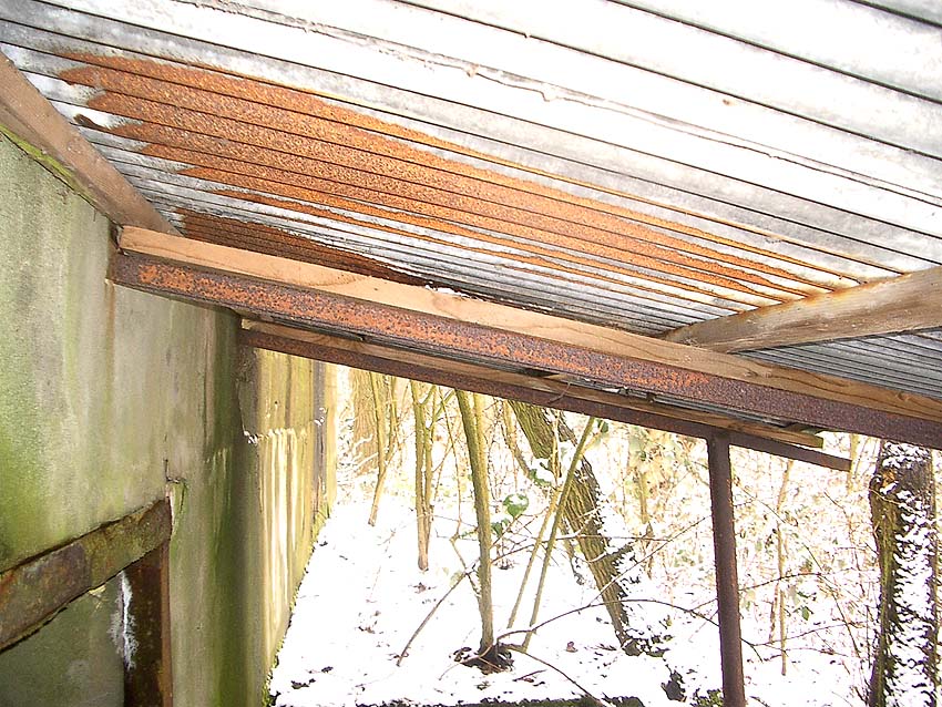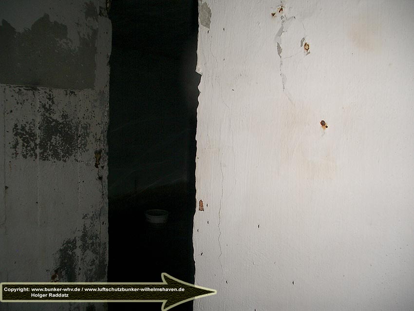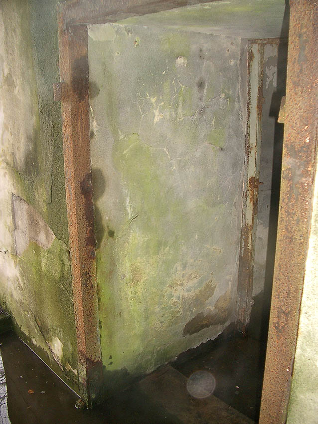 Interessant ist, dass bei diesem Bunker ein zweiter Eingang, beziehungsweise Notausgang nicht vorhanden war. Es kann natürlich sein, dass ein eventueller zweiter Eingang nachträglich versiegelt wurde. Bloß fehlt eine zweite Gasschleuse, es kann dann lediglich eine Notausstiegsluke oder ähnliches gewesen sein...