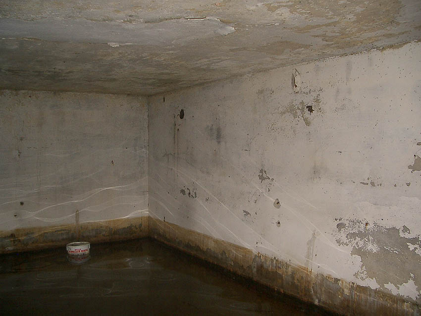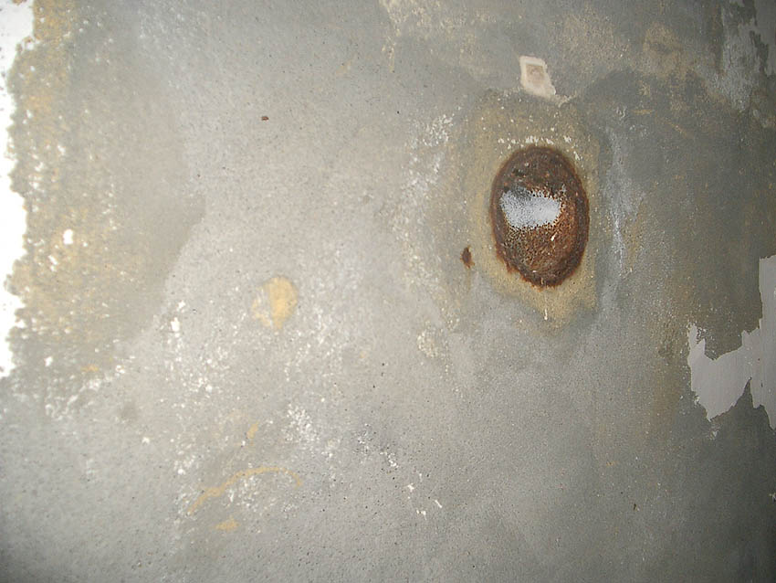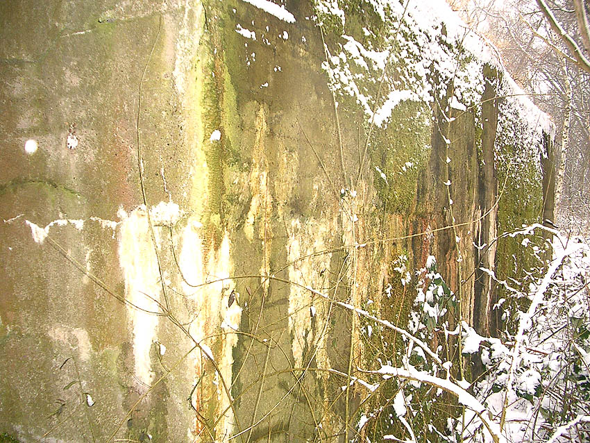 Die Außenwände des Bunkers sind teilweise mit Spritzputz überdeckt...