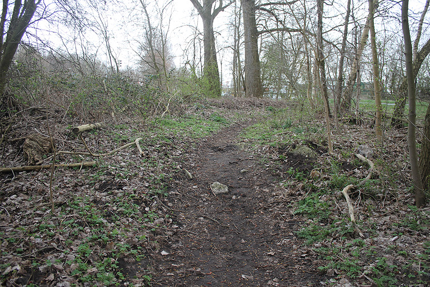 Westlich des alten Seedeiches wurde gerodet. Man erkennt den Damm des Schienenstranges im Bereich des alten Verladebahnhofes.