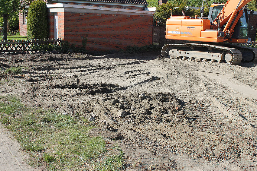 06.05.20: Über Erdgleiche ist sämtliche Baustruktur innerhalb weniger Tage entfernt worden (wohl am 28.04./29.04./30.04./04.05./05.05./06.05). Die unteren Wandbereiche (beginnend etwa 20 cm unter Erdoberfläche) und der Sockel sind erhalten geblieben. Ein Neubau mit Tiefgründung wird hier nicht geplant sein.