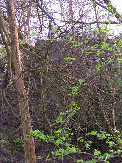 Nach Hinweisen soll sich zwischen diesem Bunker (4) und der westlich folgenden Anlage / Bunker 8 ein weiteres Objekt befinden. Dieses soll mit einem "runden / ovalen" Eingang versehen sein und bereits aus Vorkriegszeiten stammen. Auf dem 1945er Luftbild dieses Bereiches ist allerdings kein derartiges Massivobjekt erkennbar. Lediglich die hier auf den Seiten vorgestellten Objekte 1 bis 12.