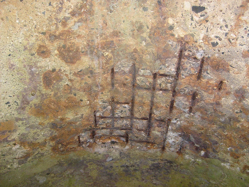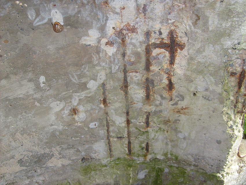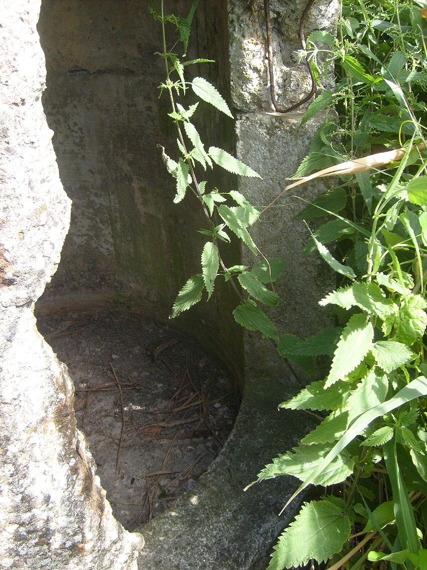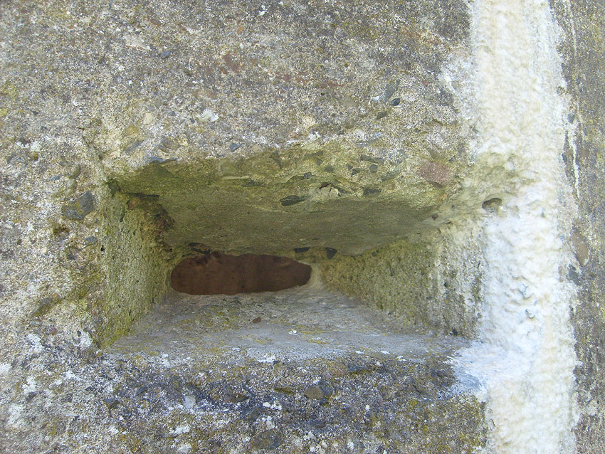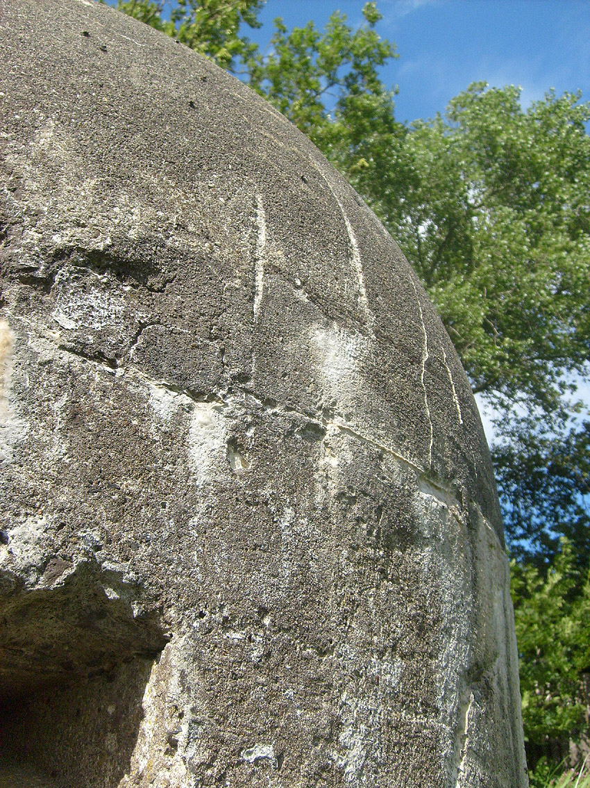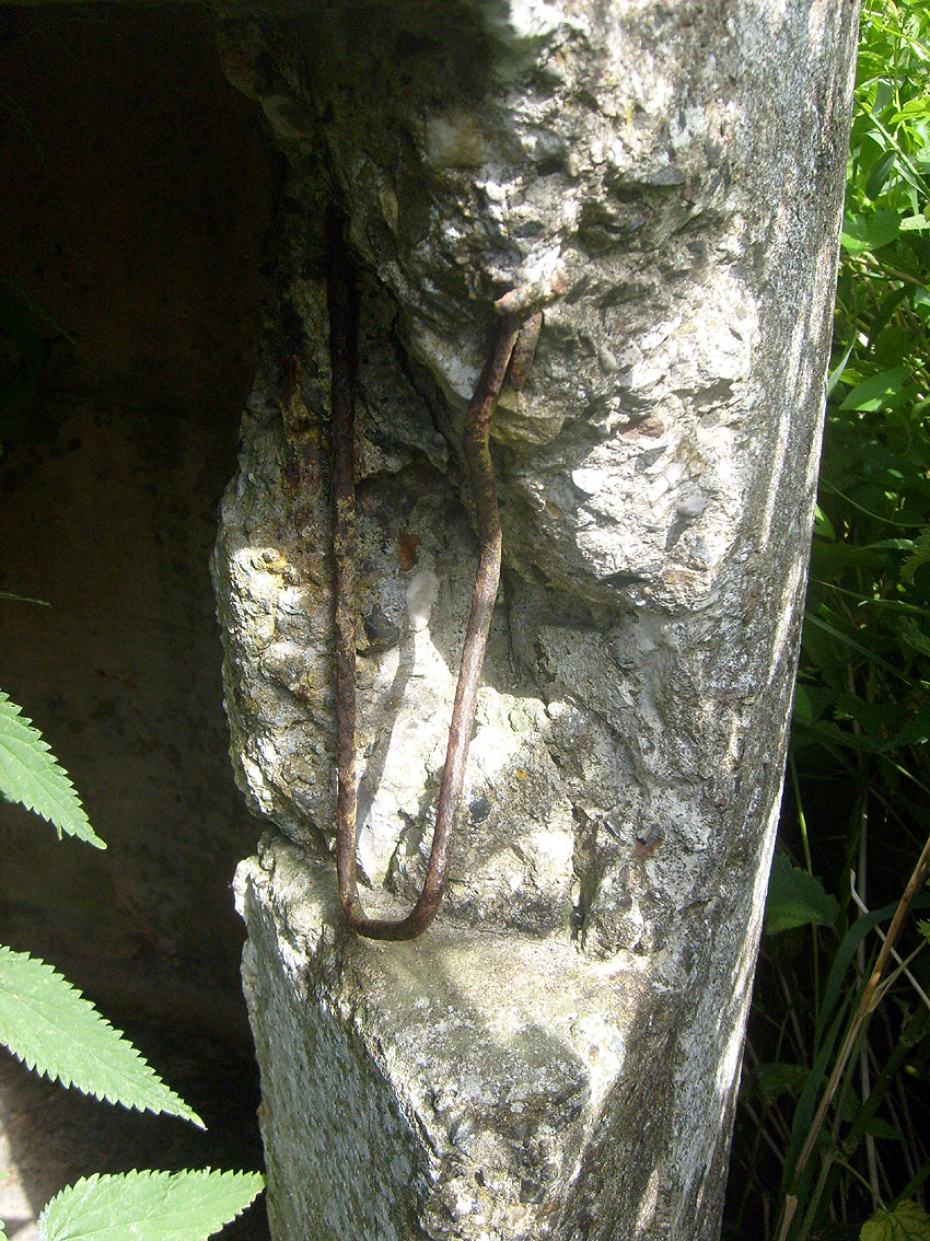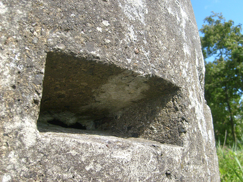 Neuester Stand: Wahrscheinlich keine Westermann-Zelle, sondern Splitterschutzzelle Fabrikat Klöckner / Klöckner-Stahlwerk Osnabrück / gefertigt im Zementwerk Piesberg / kleine Bauform / 25 cm Wandstärke / RL 3-43/41