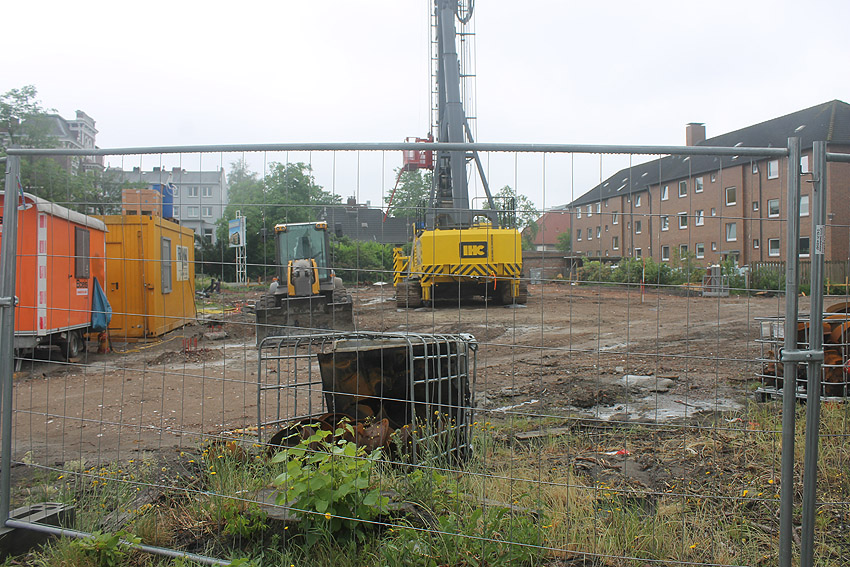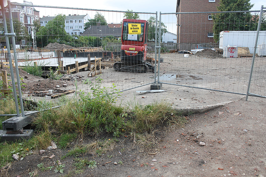 Nachtrag 13.08.19: Mittlerweile wurde das südlich anliegende Wohngebäude abgerissen. Der Neubau auf dem Allerstraßenschulgelände ist merklich vorangekommen.