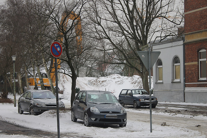 Die abgelagerten Dinge stammen von einer aktiven (!) Baustelle auf der anderen Straßenseite...