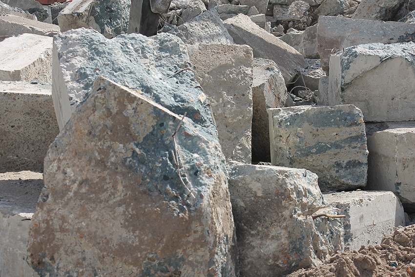 Abgerissen wurde jetzt wider Erwarten die Rundbunker-Fundamentplatte Allerstraße. Nachdem der Sockel des Neubaues bereits gefertigt war und keiner von uns mehr ernsthaft mit einem Abbruch der Platte rechnete, ist sie bedauerlicherweise nun zunächst in kleine Teile zerschnitten worden und wurde dann in "handlichen Bröckchen" abgefahren. Warum diese Maßnahme nicht vor den eigentlichen Bauarbeiten erfolgte, erst recht, da die Platte bereits ein kleines Stück für die Sockelecke des Neubaues abgefräst worden war, ist uns unverständlich. Ob noch Reste des Unterbereiches der Platte erhalten blieben, kann nicht gesagt werden, ist jedoch unwahrscheinlich.