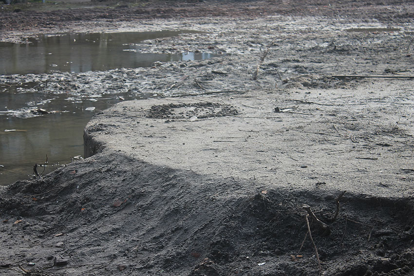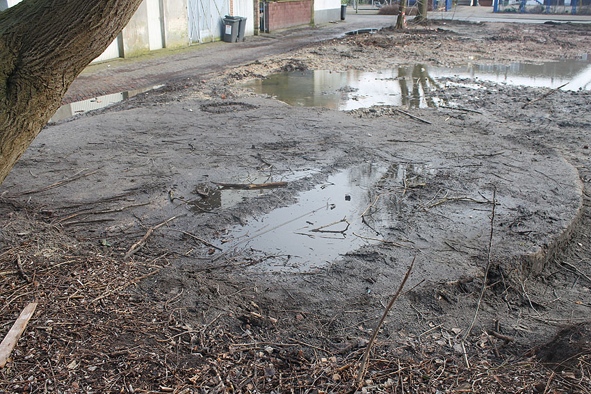 Stand 24.03.18: An der Allerstraße dient die Rundbunkerbodenplatte nun als Träger von Baumwurzelresten. Wir berichten weiter.