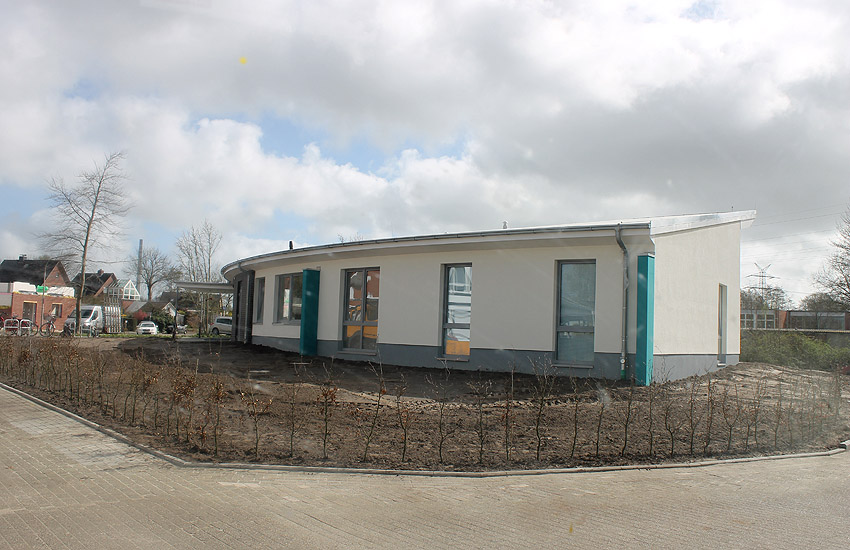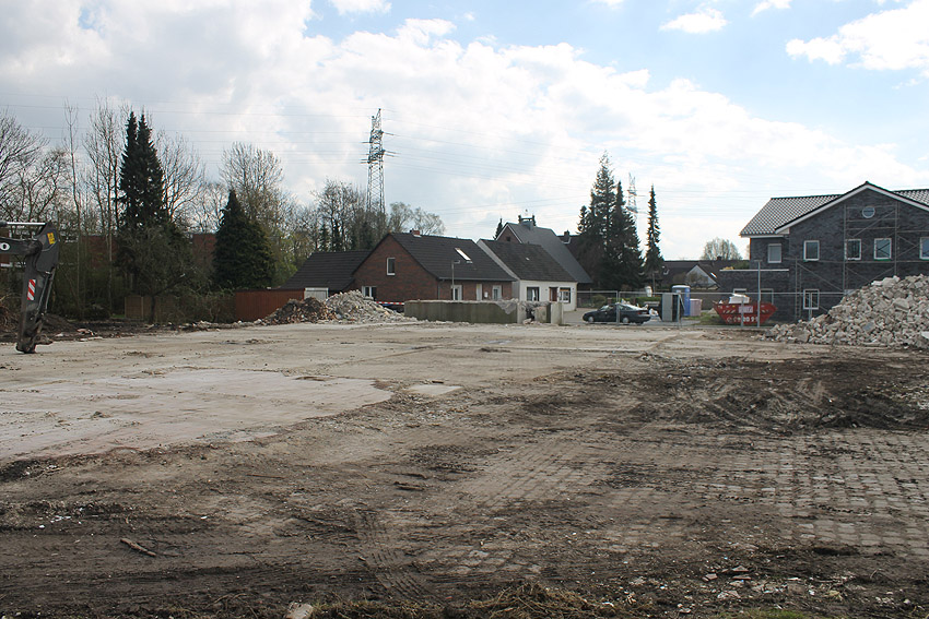 So sieht das Gelände mittlerweile aus. Der Neubau, ein Kindergarten, ist vollendet und in Nutzung. Der Bereich des ehemaligen kleinen Bunkers ist nicht bebaut. Die Anlage hätte daher als Anschauungsobjekt erhalten bleiben können, eventuell auch im Verbund mit dem Kindergarten als "Spielkeller" oder ähnliches.
