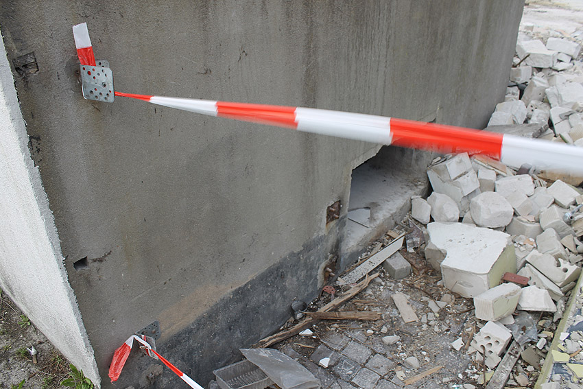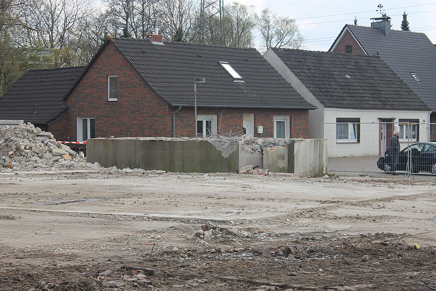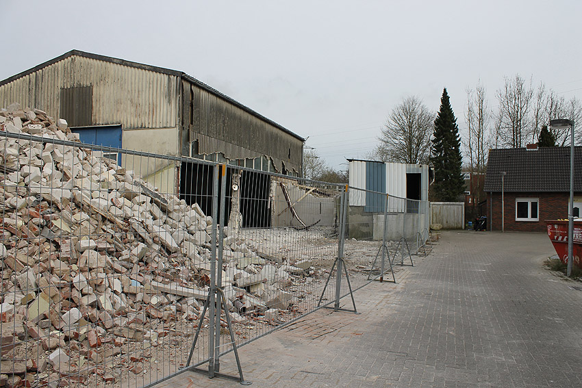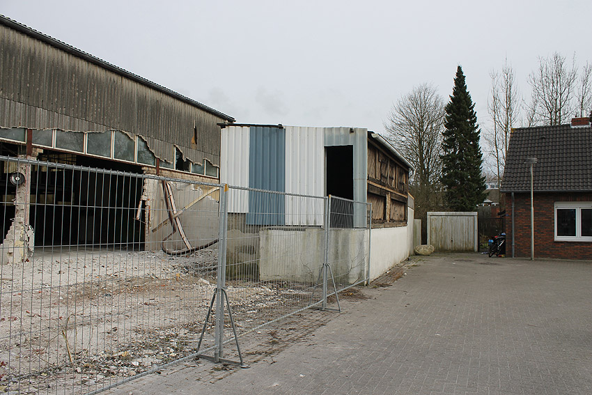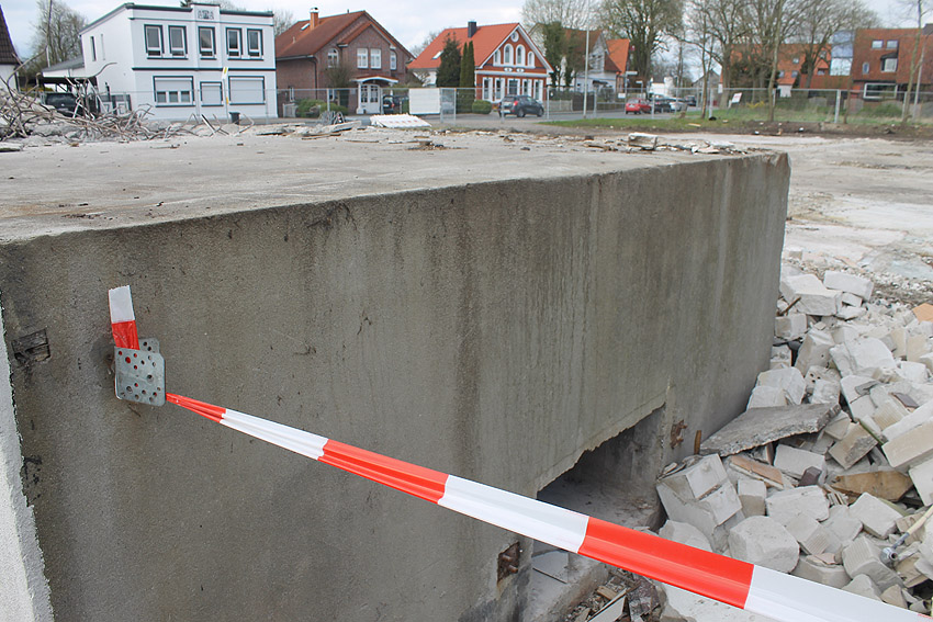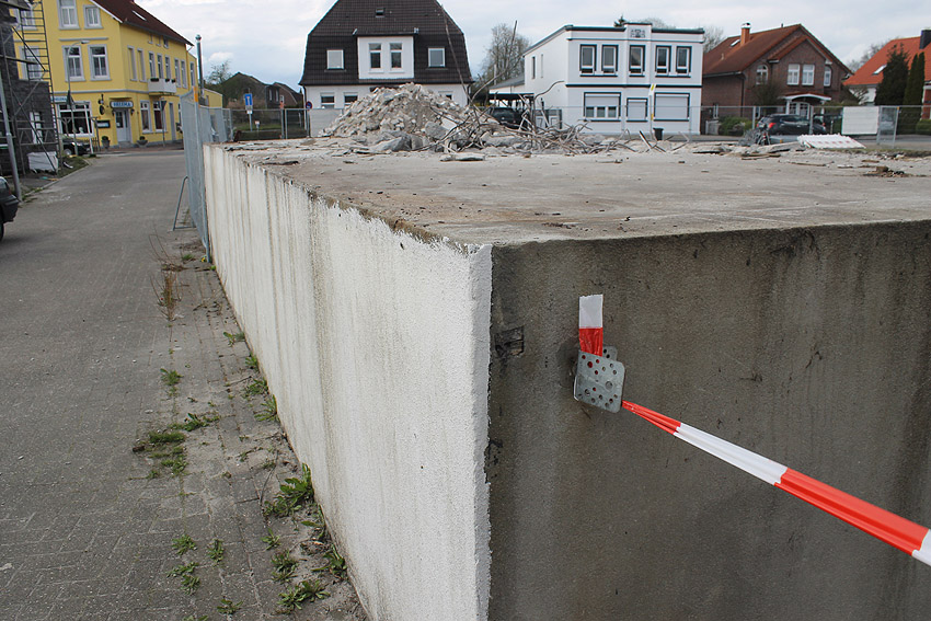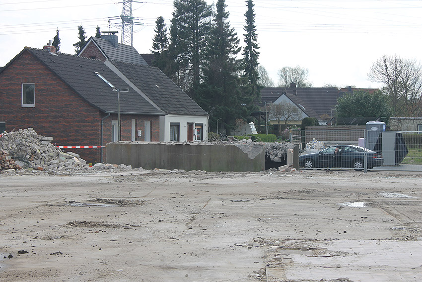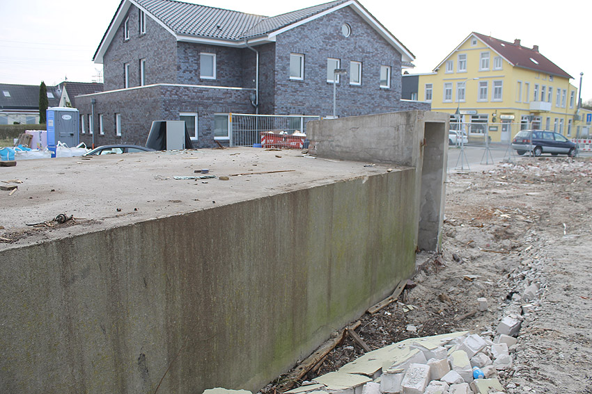 Wider Erwarten heute keine weitere Abrisstätigkeit. Der Schutzbau ist übrigens bauartgleich zum 2006 abgerissenen Zwilling in Rüstersiel bei "Blumen Fass" ausgeführt worden...