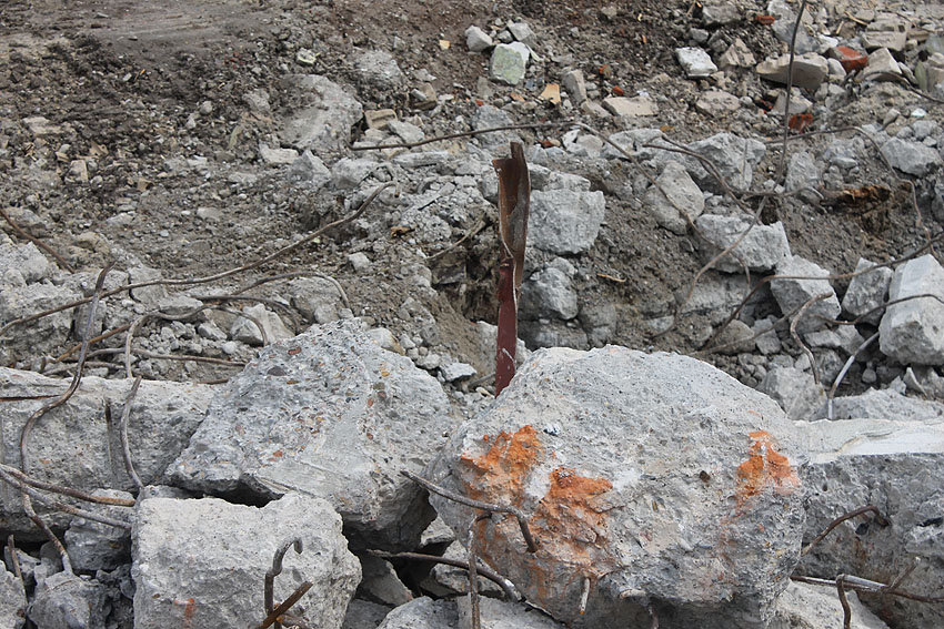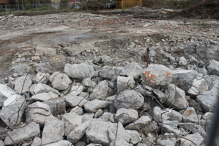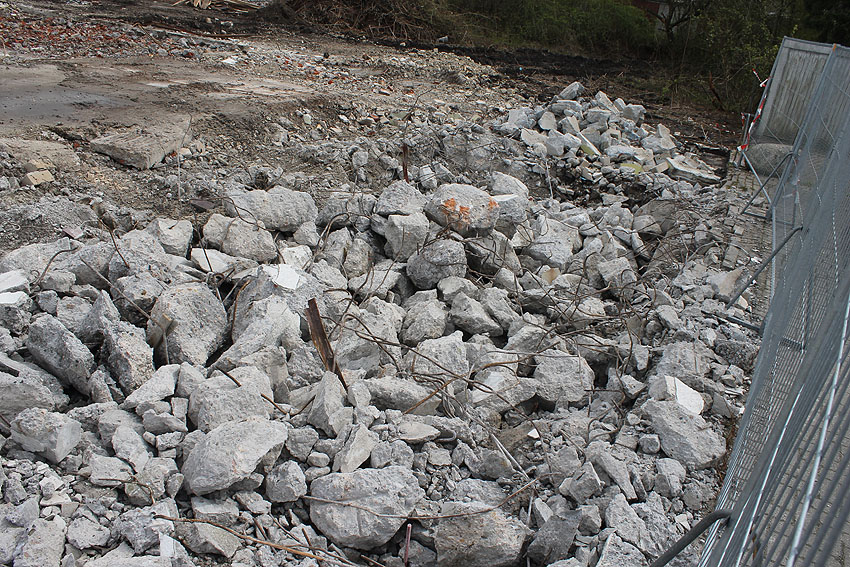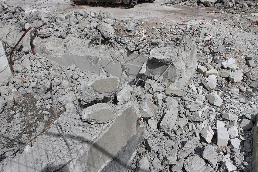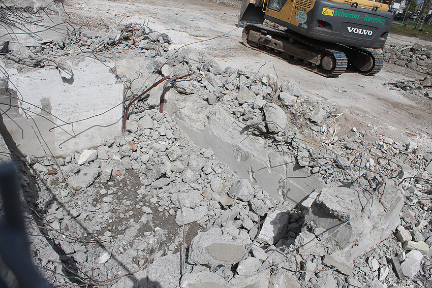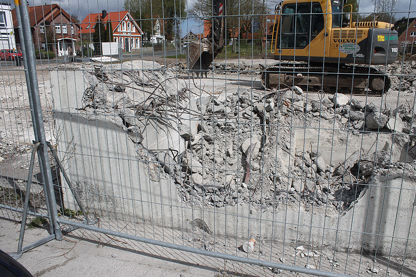 Der Abriss ist weiter fortgeführt worden. Entweder heute, oder am gestrigen 19. April... Die Decke des Bauwerkes ist fast zerstört.