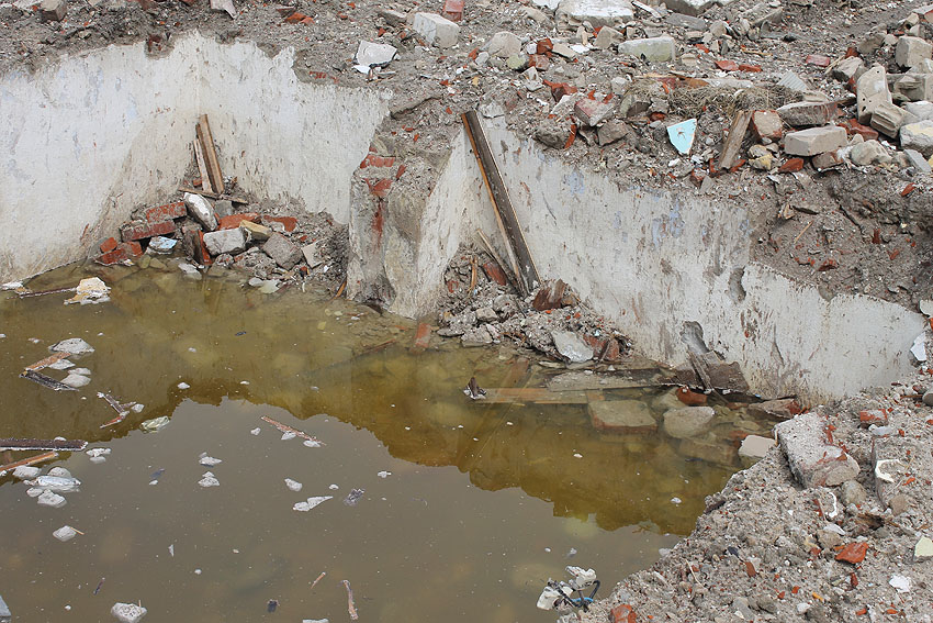 Ehemaliger Standort des kleinen Schutzraumes Rüstersieler Straße 67: Nur noch eine mit Wasser vollgelaufene Kuhle...
