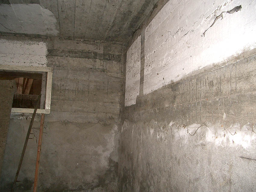 Der gesamte Bunker ist außen verputzt. Ursprünglich war er mit Erdreich angeböscht und überdeckt...