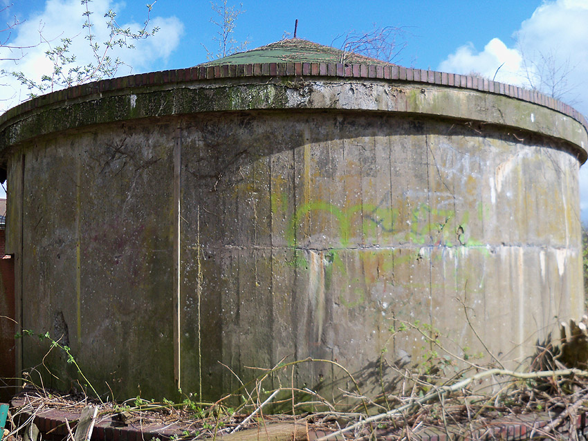 Aufgrund seiner relativ aufwendigen Bauweise im Simsbereich und Verzierungen am Sockelbereich scheint dieser Rundbunker schon sehr früh im Krieg errichtet worden zu sein. Oder aber die Verzierungen wurden nach dem Krieg angebracht. Er muss der Bedienungsbelegschaft des Südkraftwerkes / Südzentrale als Schutzraum gedient haben.