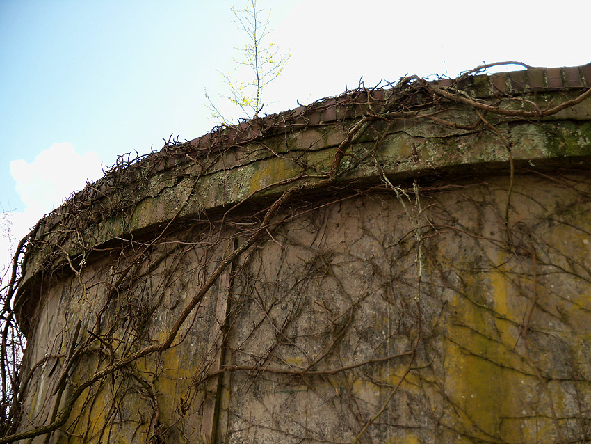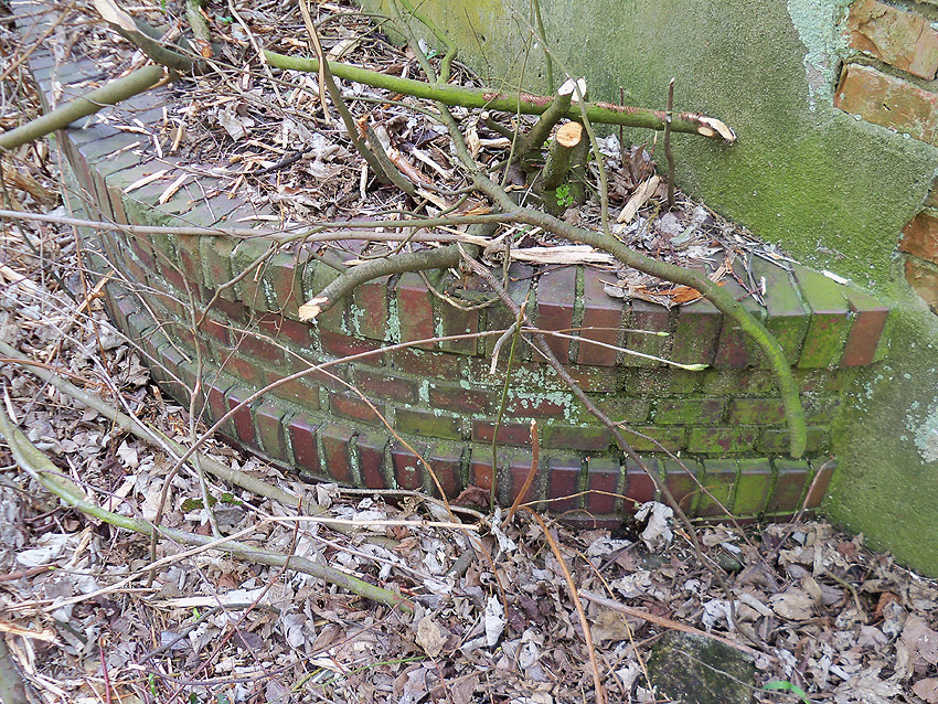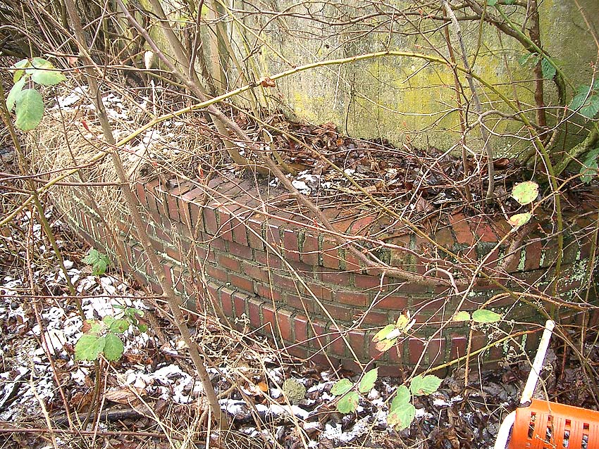 Um den Bunker herum läuft eine verzierende Mauer mit einem Pflanzbett, in welchem sich wohl Blumenbeete befanden...