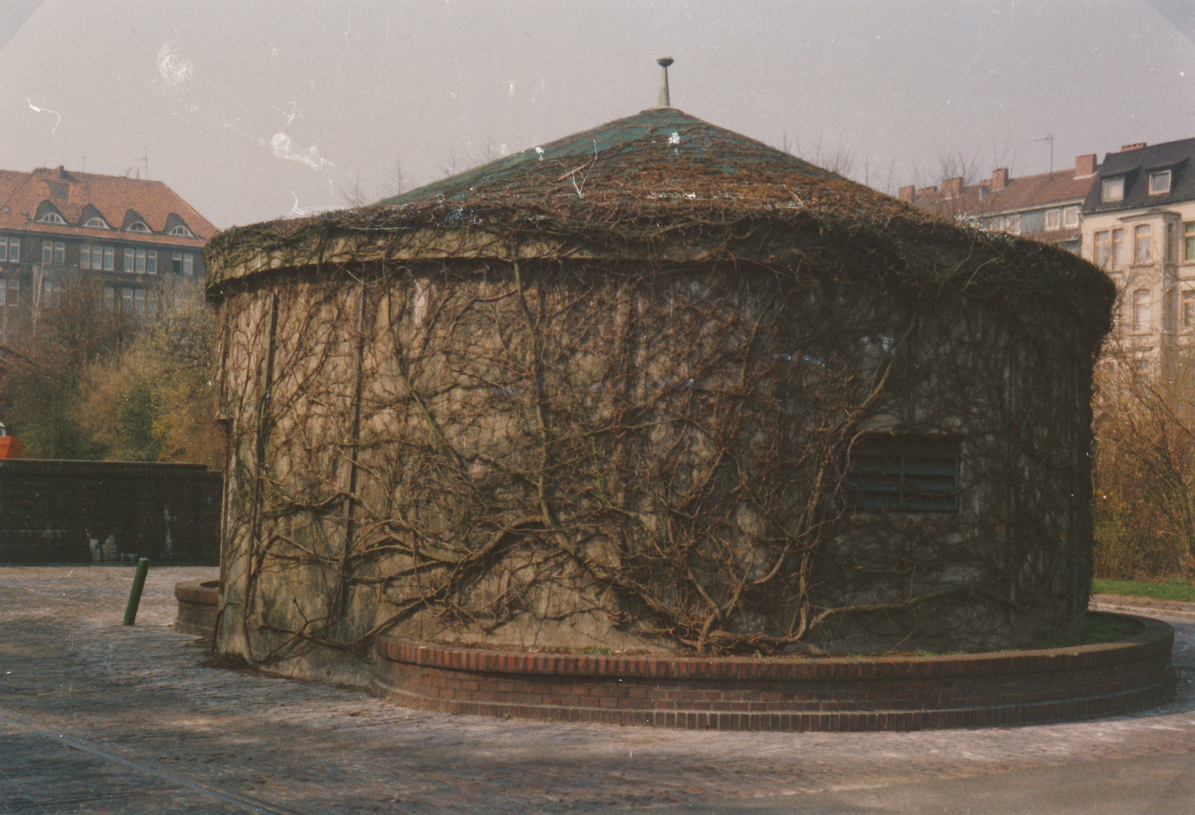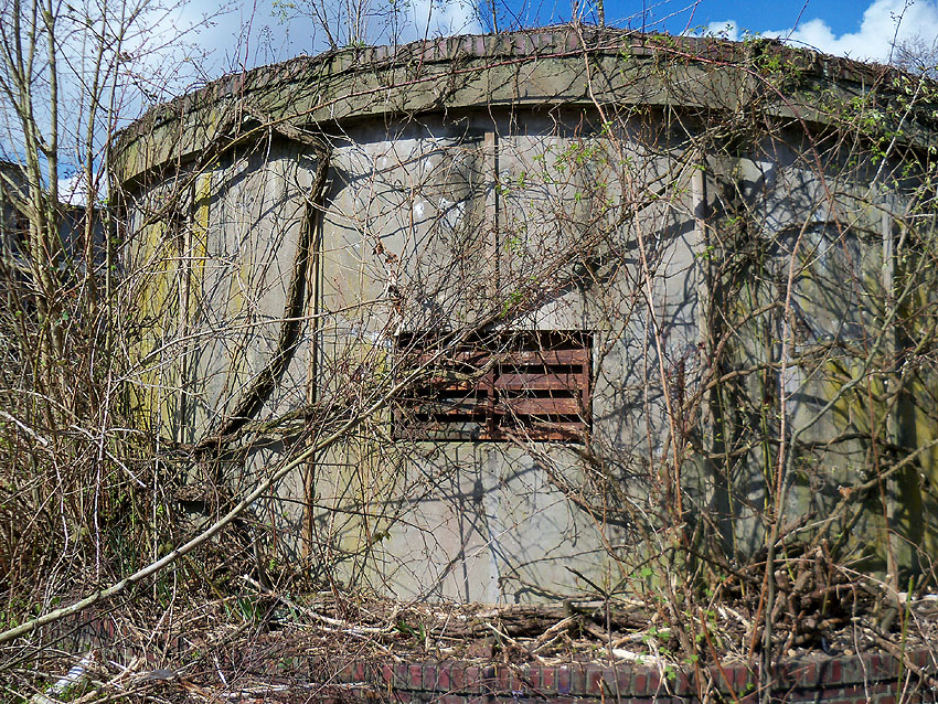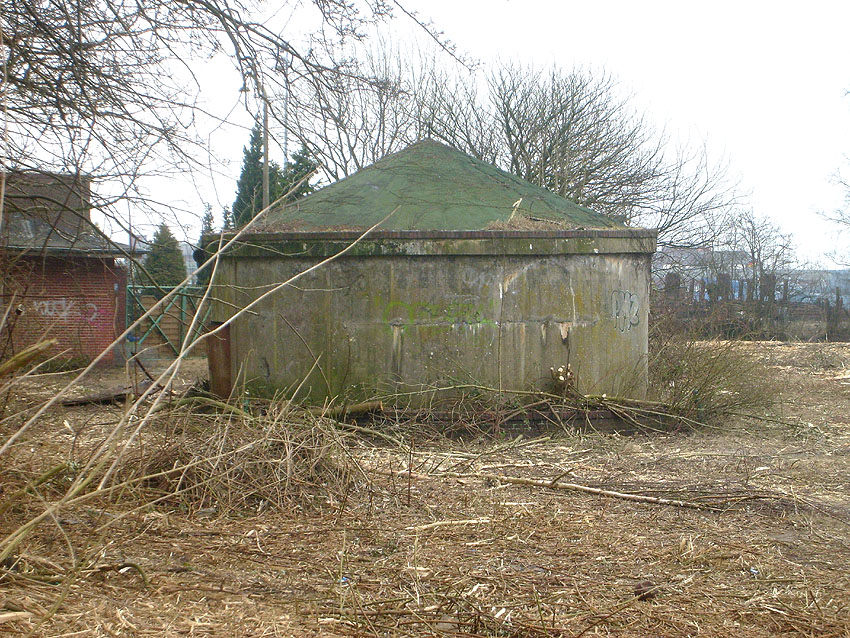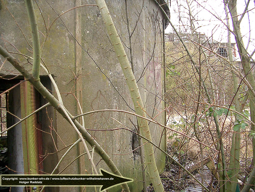 10.12.15: Der Bunker war baugleich zu denjenigen beispielsweise auf der Wiesbadenbrücke oder am Totenweg. Er besaß einen Splitterschutzvorbau im Bereich der später eingebauten "Lüftung". Dort war ursprünglich der Eingang.