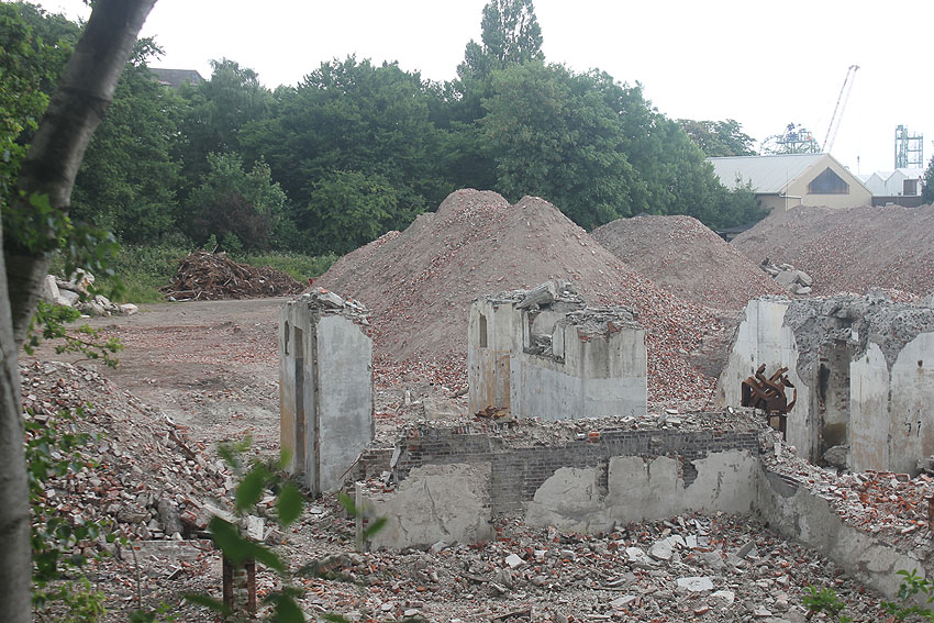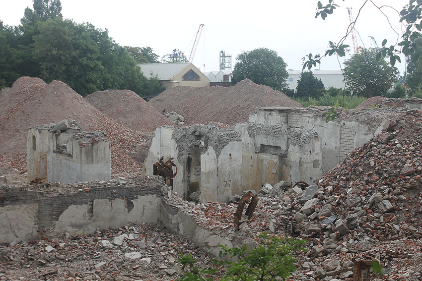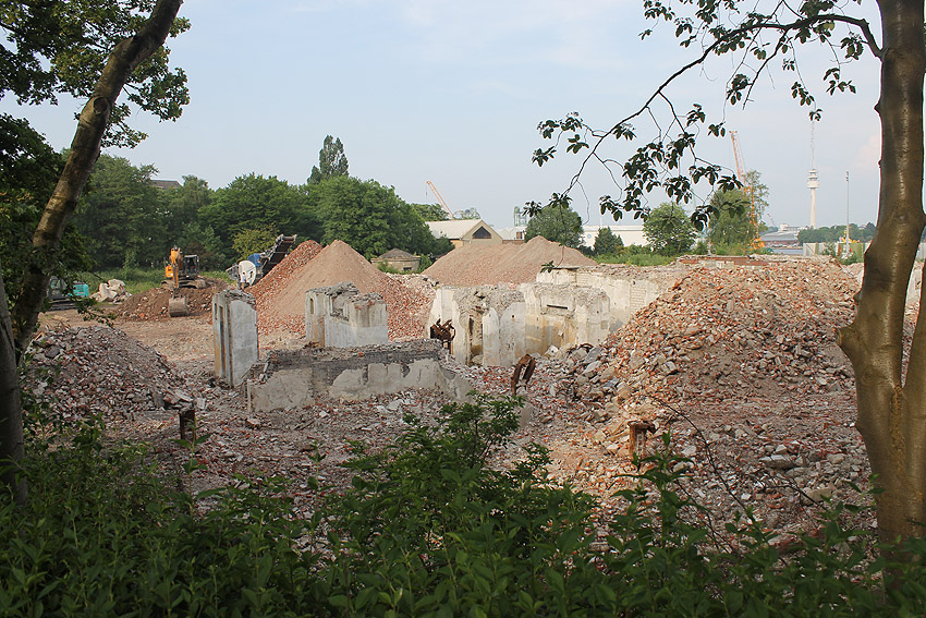16.08.15: Der Abriss der Südzentrale ist bis auf verbliebene Teile des Kesselhauses abgeschlossen. Der kleine Rundbunker ist glücklicherweise weiterhin unversehrt.