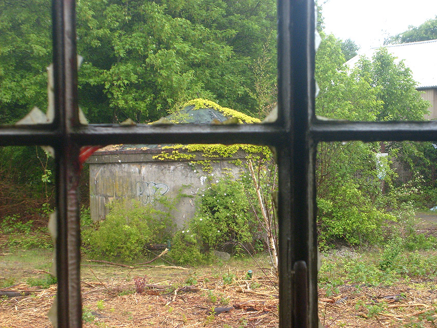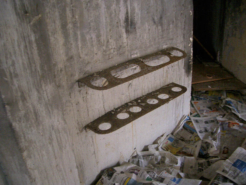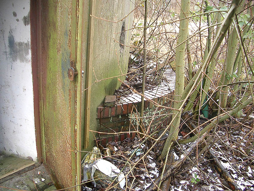 Nachtrag 10.12.15: Hier war der ursprüngliche Eingang vom Splitterschutzvorbau ins Innere. Der Rahmen steht in Zusammenhang mit der ehemals vorhanden gewesenen Stahltür.