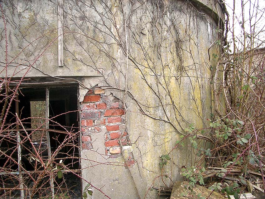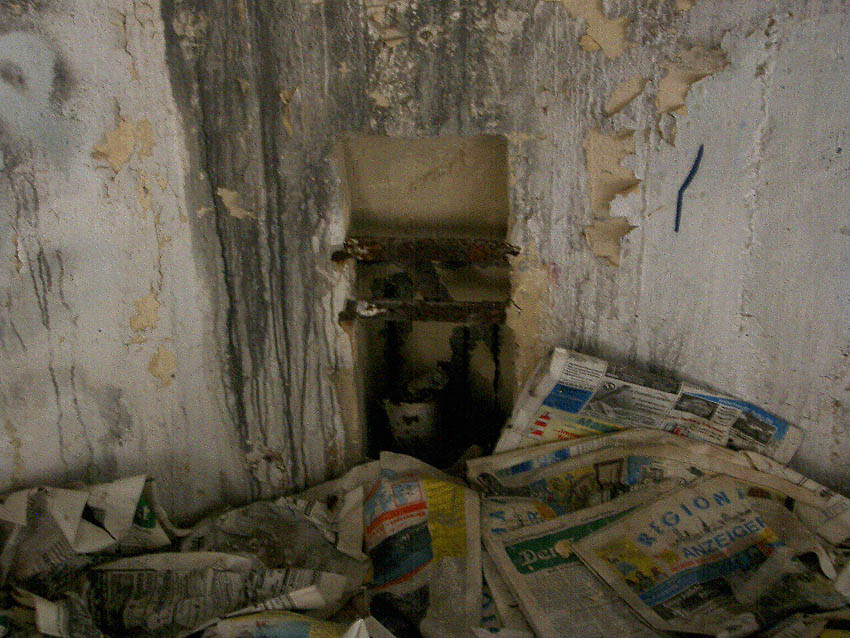 Die Reste der Gasschleusenwände am Dachbereich lassen durchaus den Verdacht zu, dass der Notausstieg, in dessem Bereich sie sich befinden, garnicht der Ausstieg war, sondern der Haupteingang. Der jetzige Eingang wäre dann ebenfalls wie das Fenster erst nachträglich eingebracht worden...