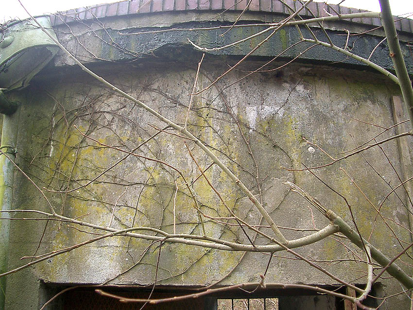 Der Bunker ist nachträglich in dem Fenstereinschnitt teilweise zur Kantenangleichung mit Mauerwerk ausgebessert worden...