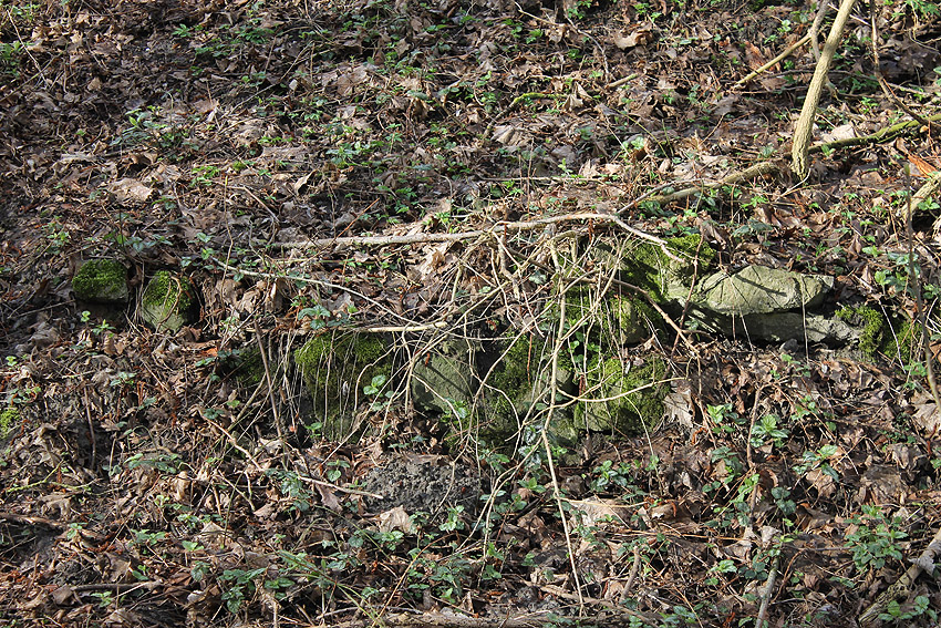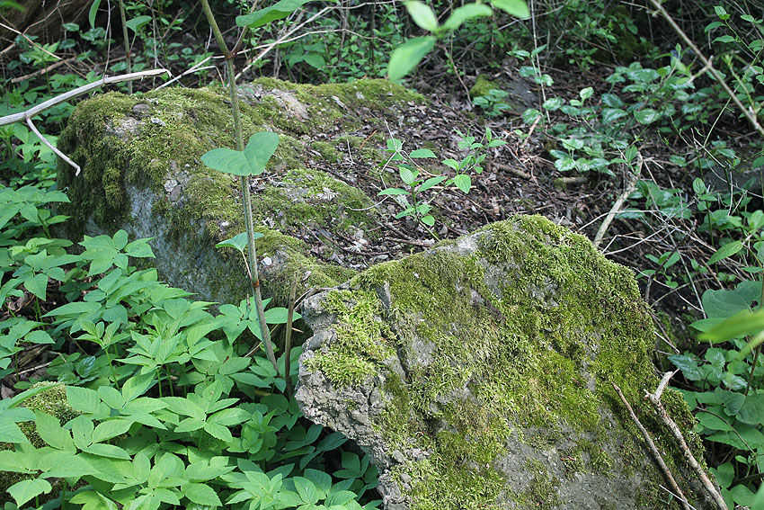 Oben / Unten: Zwei Steinquader links und rechts des Weges unweit des Südostbunkers... War hier ein Schlagbaum angebracht?