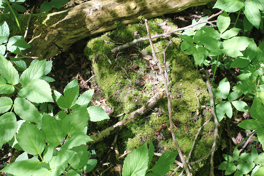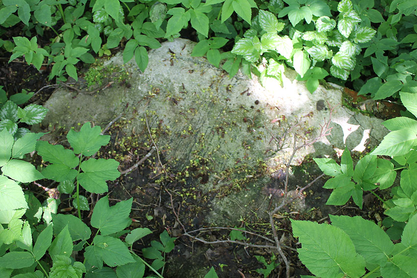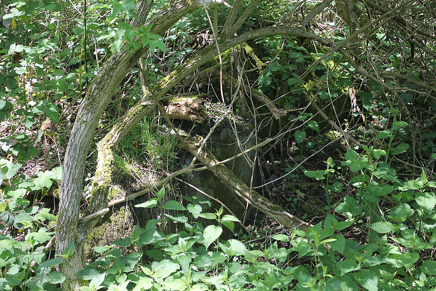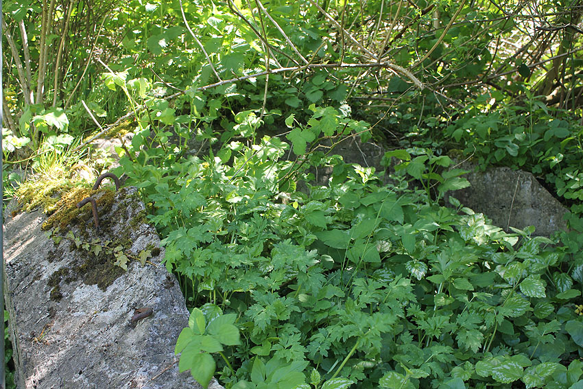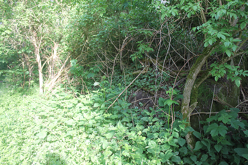 Am 4. Juni 2015 besuchten wir nochmals den überschütteten Bereich vom Geschützbunker Südwest. Was wir fanden, war nicht "Nichts", allerdings nur sehr wenig, darunter jedoch ein Treppenrest (auf den Geschützbunker?):