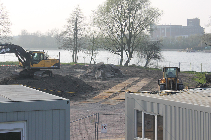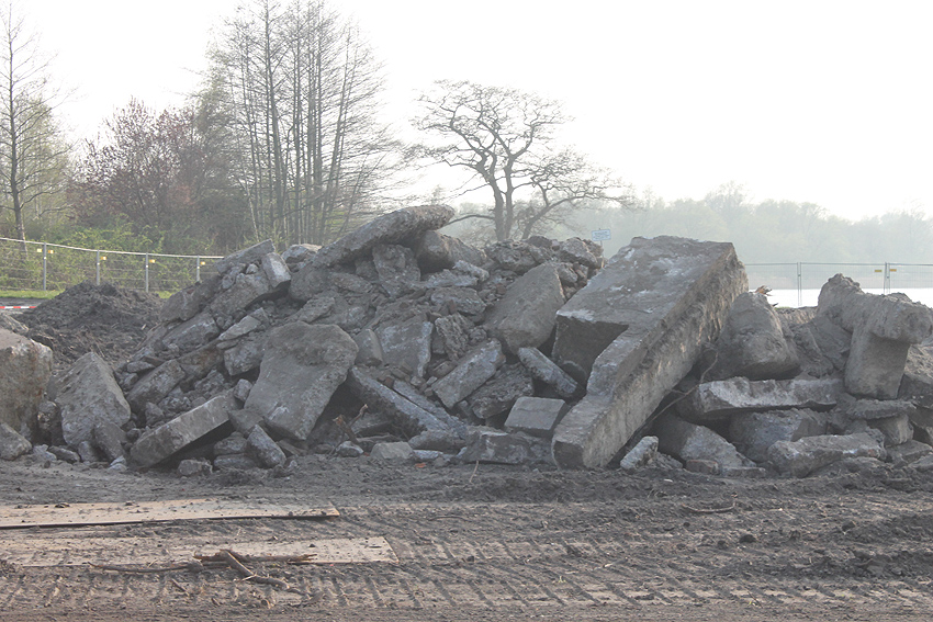 Sanierungsmaßnahmen Klein Wangerooge am 24.04.15: Der alte Tank Süd-Mitte tritt nun ans Tageslicht. Die Rückbauaktivität hat bereits vor einigen Tagen eingesetzt. Im Bereich Klein Wangerooge West, dort wo früher der Anleger der Fähre war, wurden massive Betonfundamente ausgehoben. Eventuell Reste eines Gebäudes zugehörig zur damaligen nahen Flakstellung Tirpitzhafen?