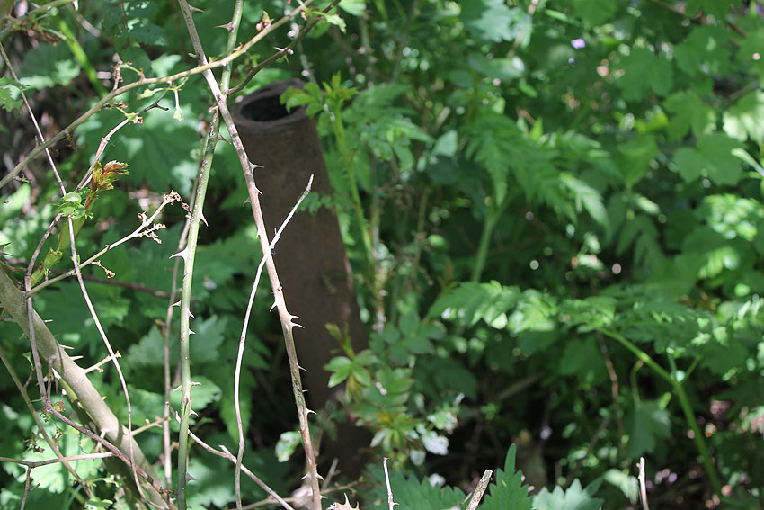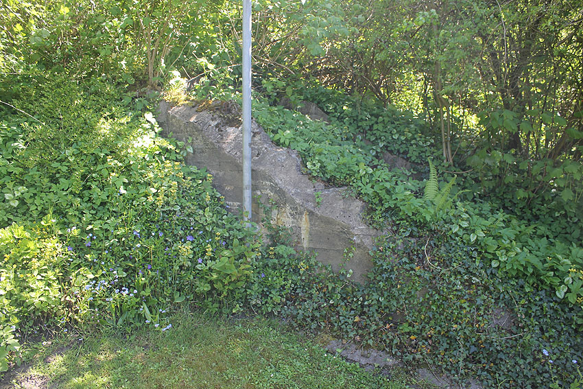 Was hatte dieses interessante Trümmerstück im intakten Zustand für einen Zweck? Wozu gehörte es? Eventuell sogar zum Leitbunker mittig der vier Bettungen? Die Position ist jedoch fast direkt am Südostbunker...