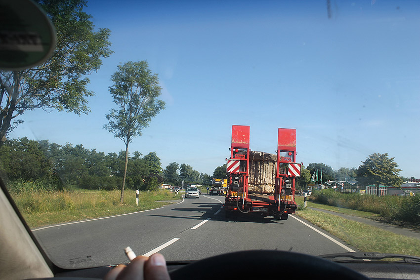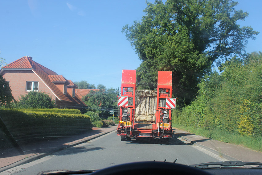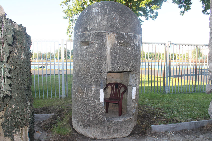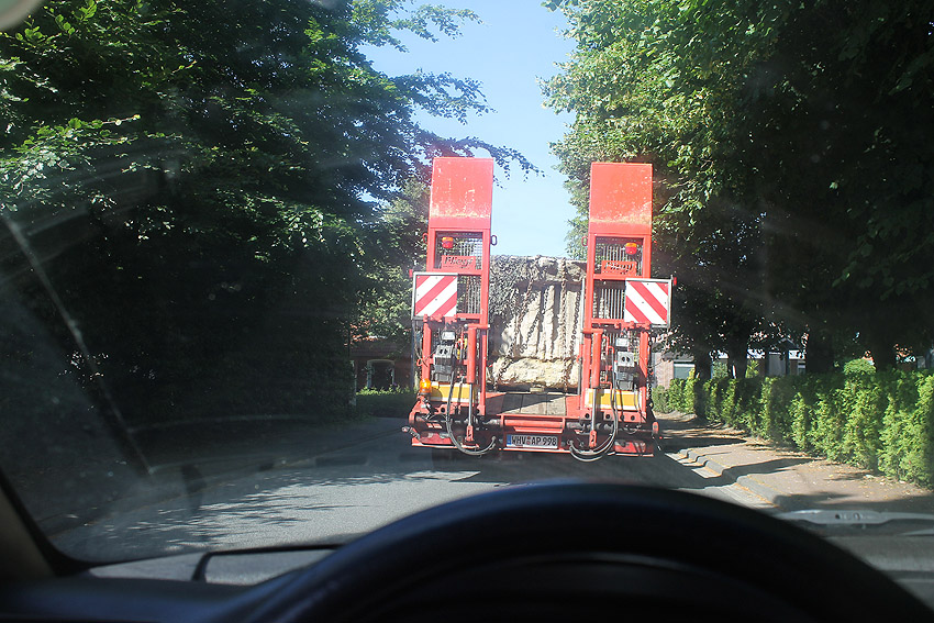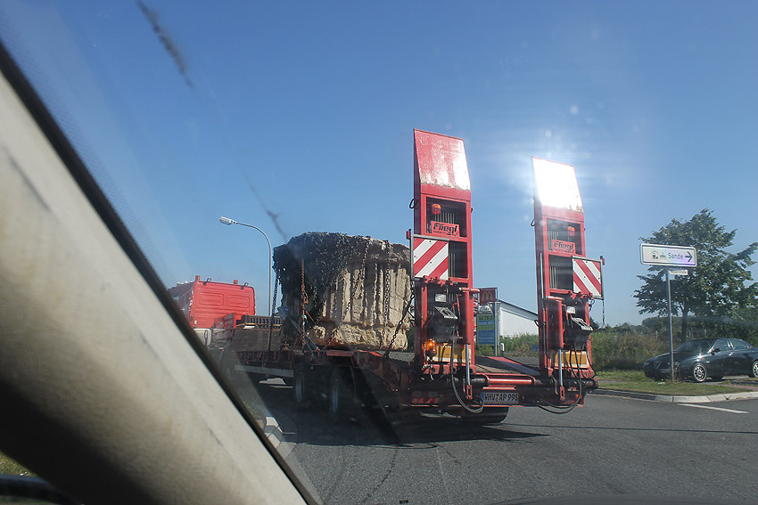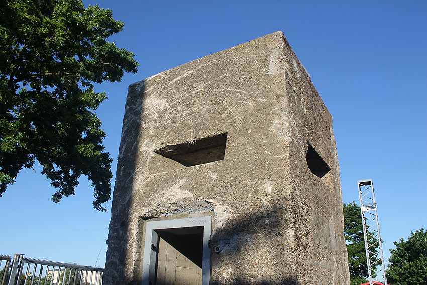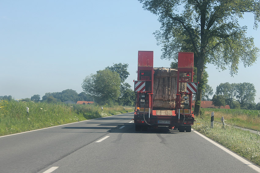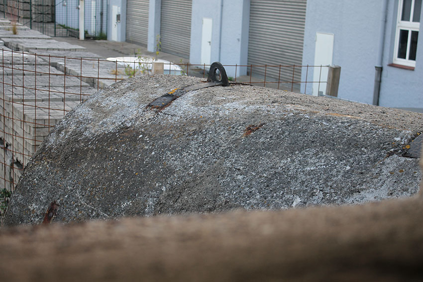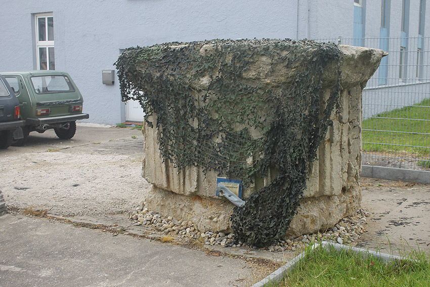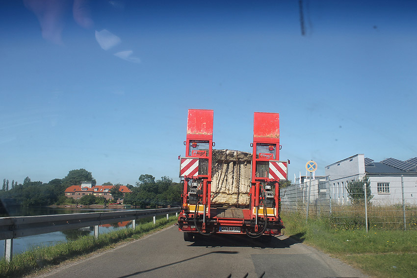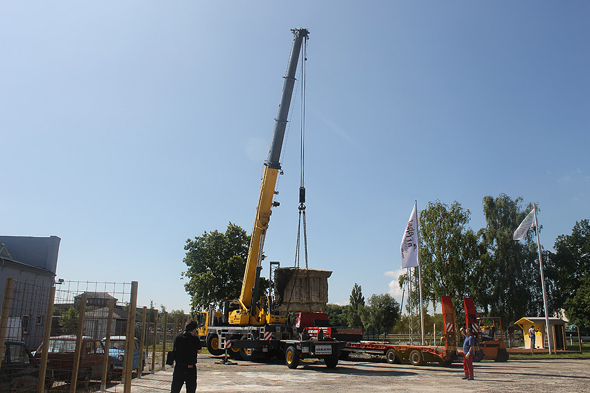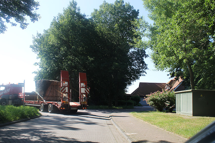 18. Juli 2013: Nach einem halben Jahr Vorbereitung und Koordinierung sagen wir heute: "Ende gut, alles gut!" Der Tobrukstand als interessantes, martialisches Zeugnis des geplanten "Friesenwalls", in einem Friedeburger Erdloch für einen MG-Schützen Ende 1944 gegossen, wurde heute intakt nach Wilhelmshaven verbracht. Er steht nun als erster von fünf Kleinbunkern auf dem IEHF-Gelände am Kanalweg. Wir danken der Firma Hepag für den reibungslosen Transport, der Interessengemeinschaft zur Erhaltung historischer Fahrzeuge für den Stellplatz, der Firma JK-Fahrzeugtechnik für die Holzspende, dem WZ-Fotografen für die Ausdauer (wir hatten uns um ca. 30 min. mit der Ankunft verschätzt) und Herrn Wiard Remmers, der alles damals und bis jetzt durch seine Hilfe erst ins Rollen brachte.