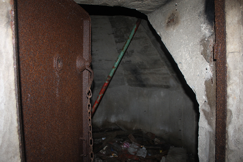 Anfang 2016 war der Bunker zeitweise zugänglich. Interessant ist die saubere Schalung im Inneren, besonders die zehneckige innere Kuppelschalung, das Luftrohr genau mittig in der Kuppel, die beiden LS-Türen und der Notausstieg.