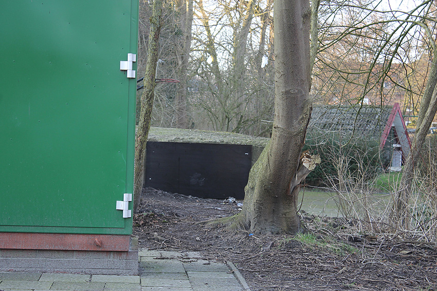 Dezember 2018: Mittlerweile wurde eine Schicht Erdreich vor die Eingangsstelle geschüttet. Eventuell war der Bunker in der Zwischenzeit nochmals aufgebrochen worden.