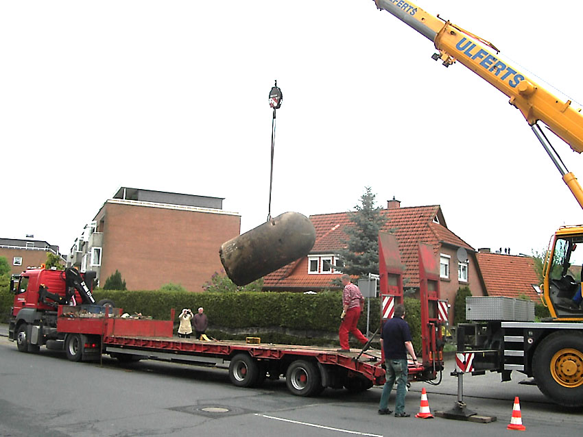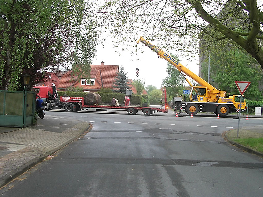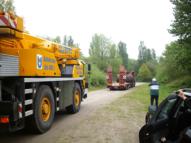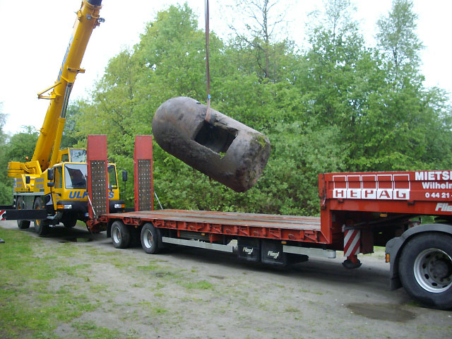 ...der Weg der Splitterschutzzelle vom Fundstandort im Freibad "Klein Wangerooge" durch die Stadt Wilhelmshaven bis hin zum neuen Standort am Minsener Oog 1A...