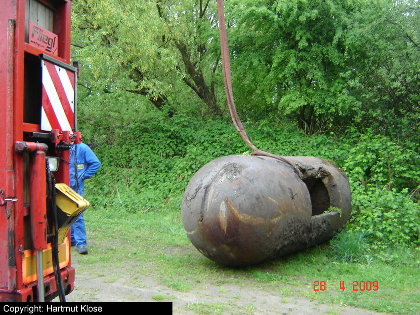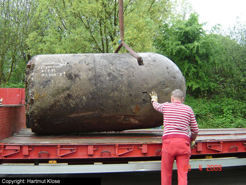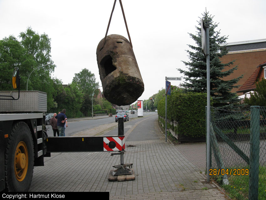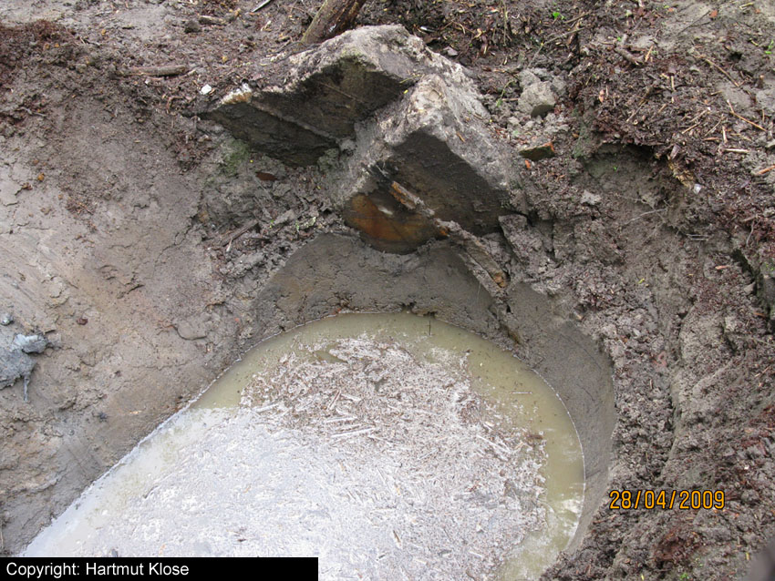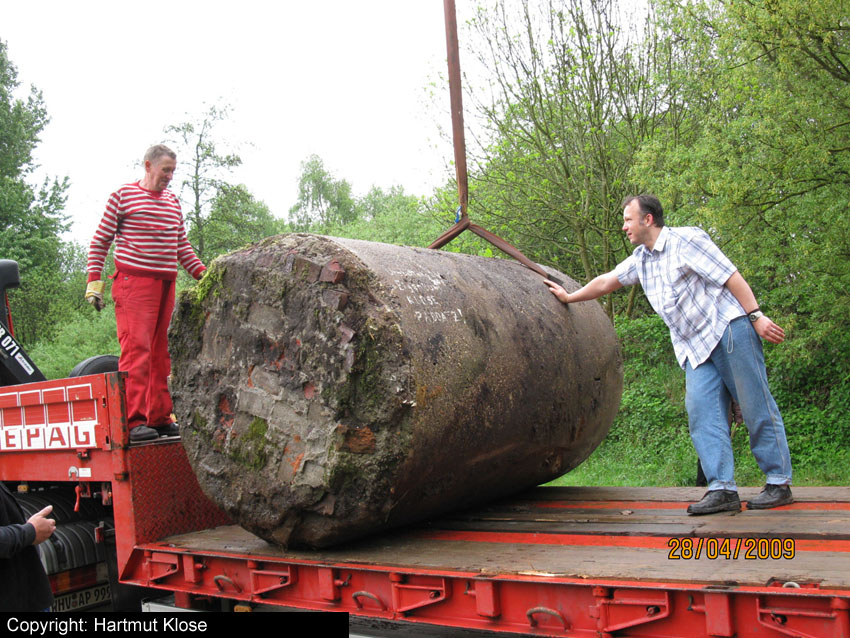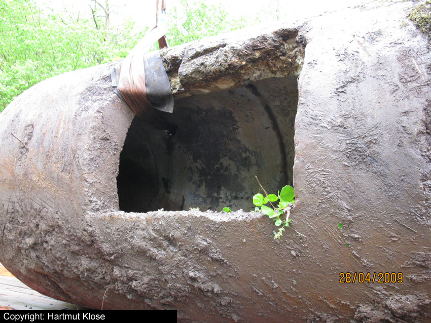 Neuester Stand: Wahrscheinlich keine Westermann-Zelle, sondern Splitterschutzzelle Fabrikat Klöckner / Klöckner-Stahlwerk Osnabrück / gefertigt im Zementwerk Piesberg / kleine Bauform / 25 cm Wandstärke / RL 3-43/41