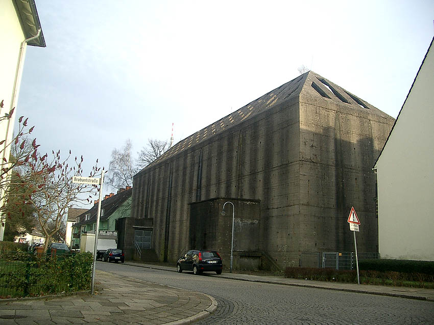 Hochbunker Treseburger Straße Ecke Osterdeich. Er liegt genau gegenüber vom Weserstadion, wurde entfestigt und umgebaut. Heute befindet sich im Erdgeschoss eine Tankstelle (!). An der Westseite ist noch immer ein Originalschriftzug vorhanden. Dieser war lange Zeit durch eine Plakatwand verdeckt. Nachträglich wurde der fast verblichene Schriftzug anhand der Originalkonturen "erneuert". Nach Hinweisen zeigte der Schriftzug ursprünglich zum nach der Entfestigung entfernten Haupteingang im abgebrochenen Splitterschutzvorbau an der Südwestecke / Südwand des Bunkers.