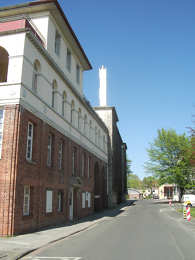 Interessant: Der nordöstliche Turm der DESCHIMAG / AG Weser (Foto oben / Blick von der Werft) wurde 1940 außerhalb des eigentlichen Werftgeländes nahe den dortigen OT(Organisation Todt)-Wohnbaracken nördlich der heutigen Kap-Horn-Straße / westlich der heutigen Louis-Krages-Straße errichtet. In ihnen wohnten Arbeiter der AG-Weser-Werft. Später sollte unweit nördlich des Winkelturmes der U-Bootbunker Werner / Weser I errichtet werden. Er kam aber bis Kriegsende nicht mehr über die Baugrube hinaus. Die OT-Baracken und der Winkelturm hätten das Behausung / Luftschutz für die Arbeiter der U-Bootbunkerbaustelle gedient.