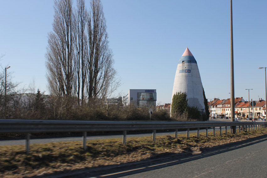Winkelturm Pfalzburger Straße I. Einer von ehemals drei Winkeltürmen des Focke-Wulf-Werkes Pfalzburger Straße.
