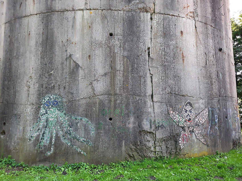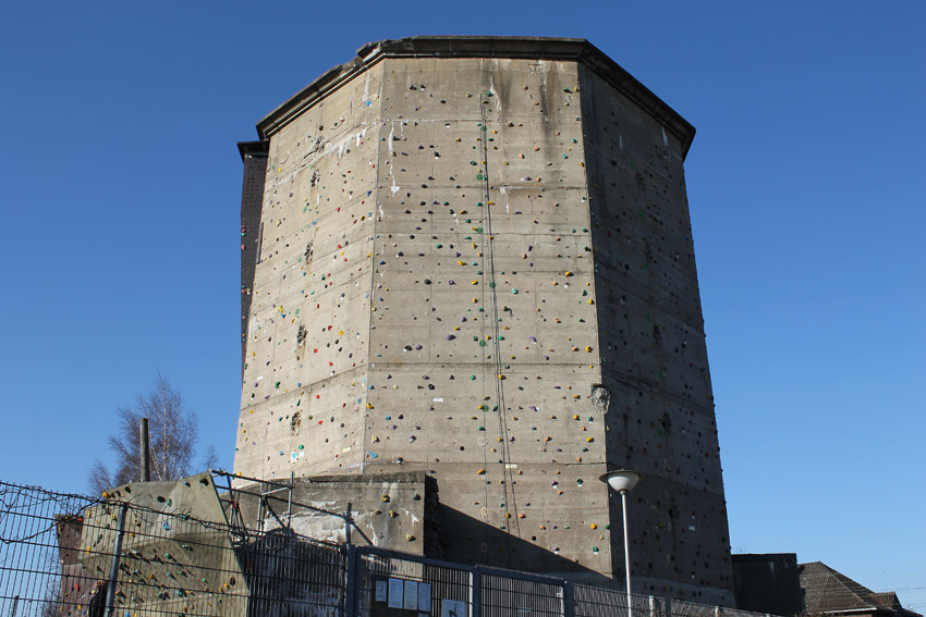 Achteckiger Reichsbahn-Luftschutzturm Mählandsweg am Rangierbahnhof, heute Kletterbunker.