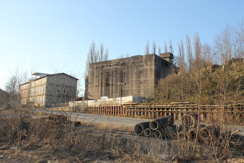 Nicht vollendeter U-Bootproduktionsbunker Hornisse / genau westlich neben Standort ehemaliger Bunker 50. Der Anfangsbuchstabe "H" war Codebuchstabe für den Errichtungsort Bremen-Häfen.