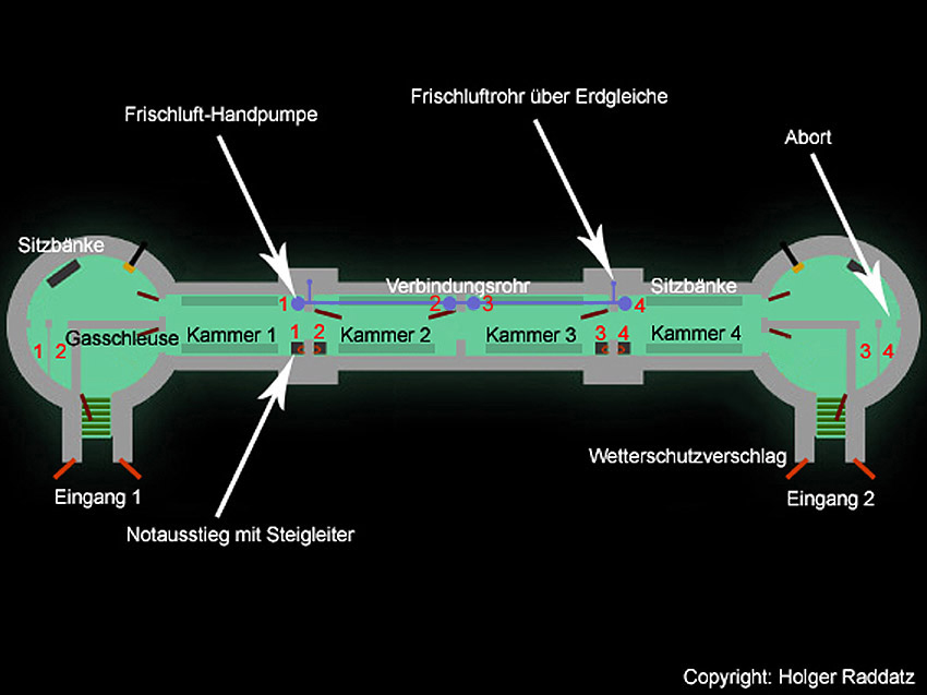 Mindestens elfmal wurde nachweislich die Luftschutzanlage / Luftschutzstollen der Bauart "Herzbruch" (Kennummer RL 3-39/317), benannt nach dem Konstrukteur Hugo Herzbruch, zwischen Ende 1939 und Anfang 1940 in der Kriegsmarinestadt Wilhelmshaven errichtet: