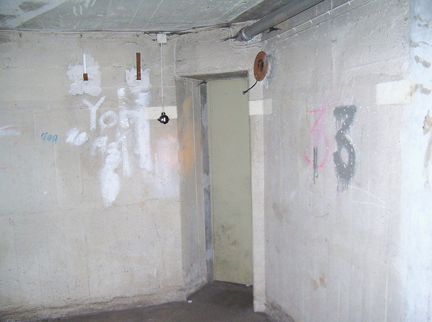 In den 1980er Jahren bis in die 1990er Jahre probten in allen acht Haupträumen des für den Zivilschutz in den 1960er Jahren bedingt hergerichteten Bunkers Musikgruppen. Deren Überbleibsel sind noch heute vorhanden. Auffällig an der Innenseite der Abschlussdecke ist die Stahllamellenpanzerung, wie sie sonst auch bei Regelbauten des Atlantikwalles oft vorkommt. Das EG besitzt vier Aufenthaltsräume und vier kleine Aborte im Kern des Bunkers. Zwei gegenüberliegende Treppenhäuser sind vorhanden. Im Obergeschoss befinden sich wiederum zwei große Aufenthaltsräume (ehemals waren hier vier Räume, die Trennwände wurden später entfernt) mit zwei kleineren Verbindungsräumen beziehungsweise Gängen, in denen die insgesamt vier Wasserboiler für Frischwasser und Heizung installiert sind. Der Bunker wird Ende des Jahres an die BIMA zurückgegeben.