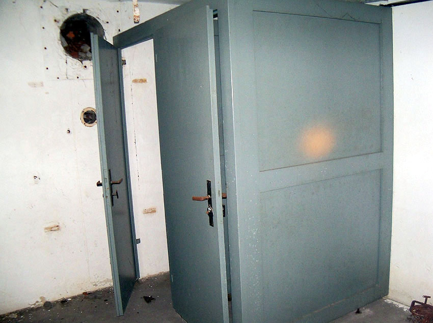 Die folgenden Aufnahmen stammen allesamt aus dem Erdgeschoss. Das Obergeschoss ist aufgrund extremer Feuchtigkeitseinwirkung in Folge starker Undichtigkeiten der Bunkerdecke und stehendem Wasser momentan nur mit Mühe begehbar.