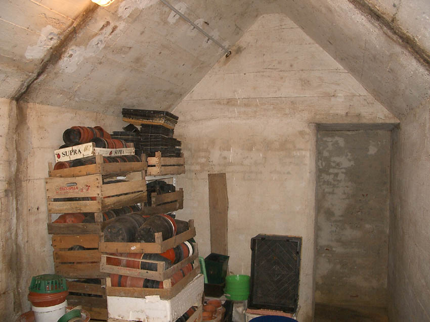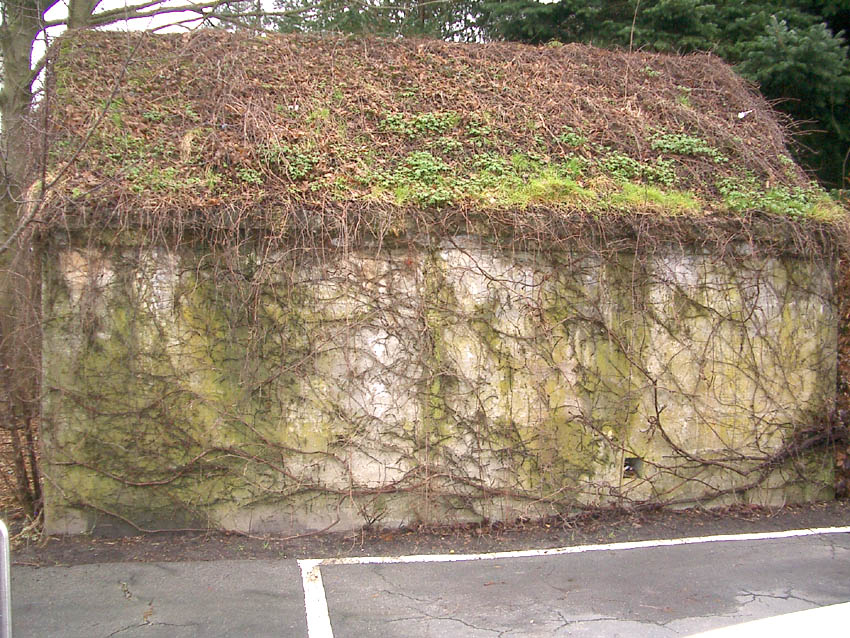 Die Furchen im Dach (auf dem Bild ersichtlich an der Ecke des Eingangsbaues vorne mittig links) sollten zur Aufnahme von Dachpfannen aus Tarnungsgründen und für die ästhetische Erscheinung dienen. Ob dies hier eventuell irgendwann im Krieg geschehen ist wie um das Jahr 1971 nachträglich am Deckungsgraben einige Meter südlich, ist unklar.