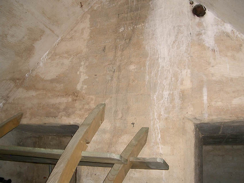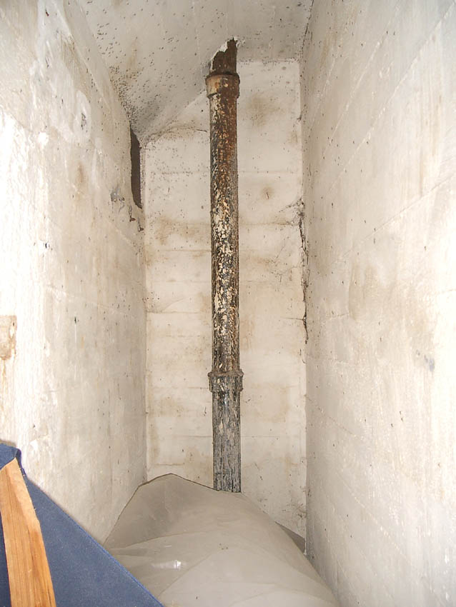 Reste der Lüftung zu einem der Lüftungstürme. Hier muss eine Handfilterpumpe befestigt gewesen sein.