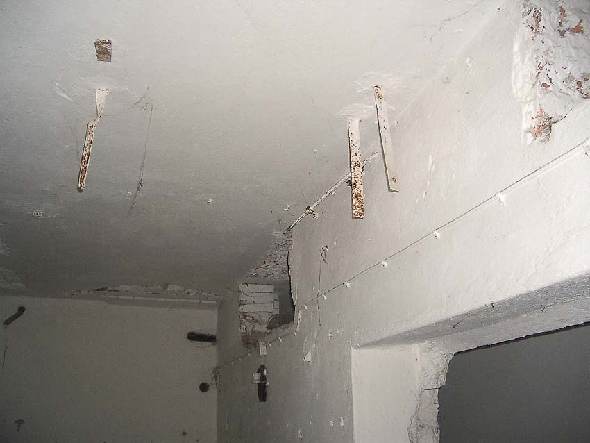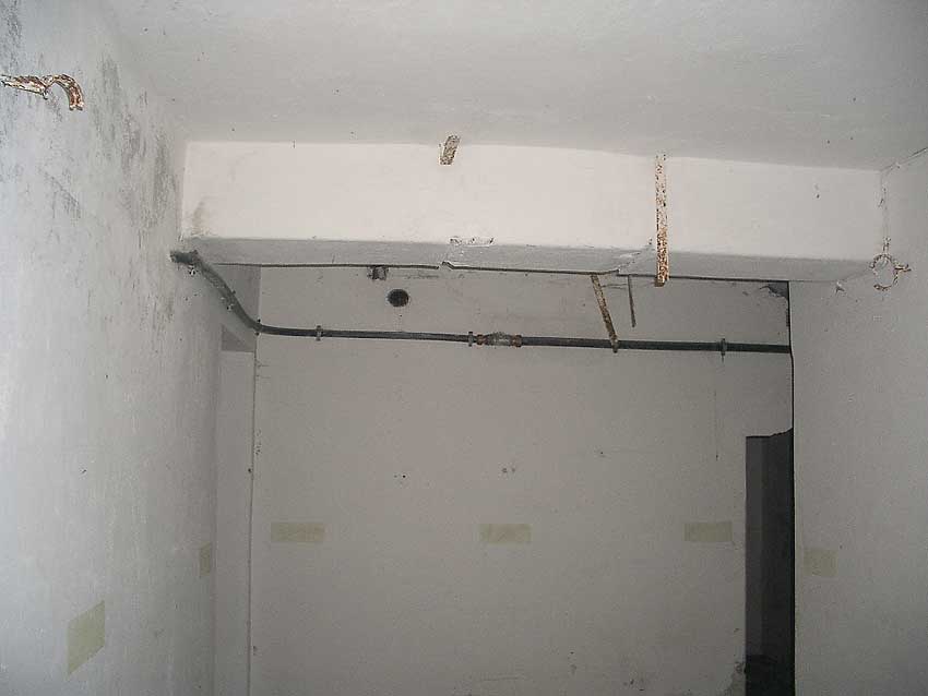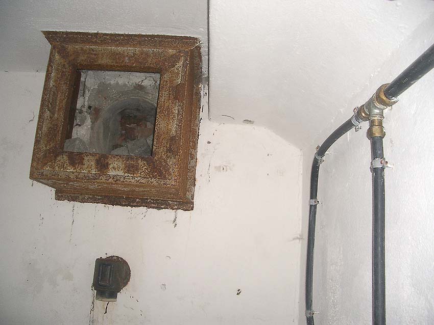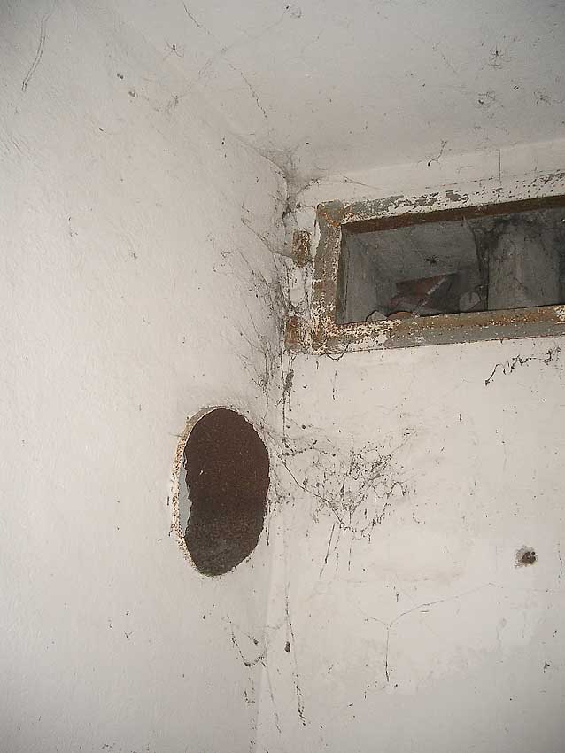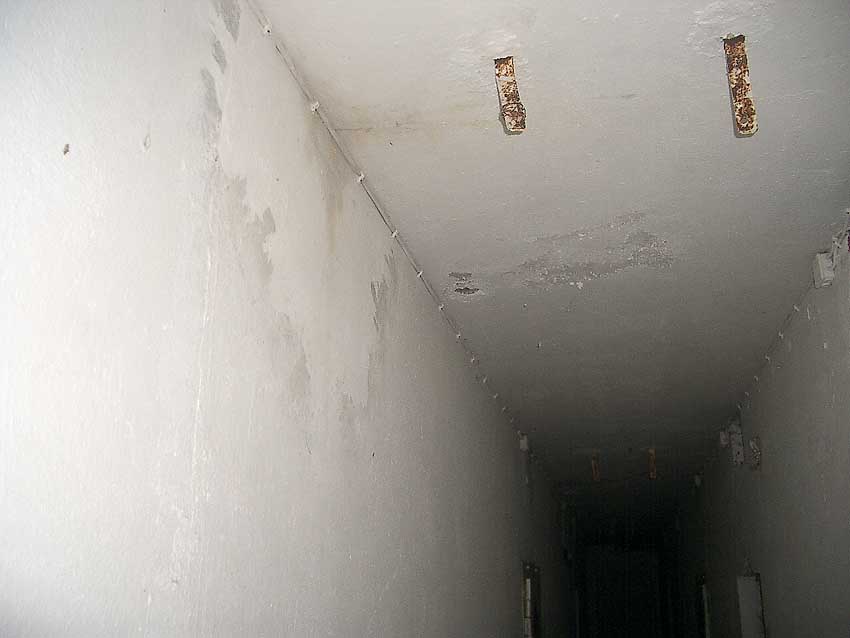 Die folgenden Aufnahmen stammen allesamt aus dem Erdgeschoss. Das Obergeschoss ist aufgrund extremer Feuchtigkeitseinwirkung in Folge starker Undichtigkeiten der Bunkerdecke und stehendem Wasser momentan nur mit Mühe begehbar.