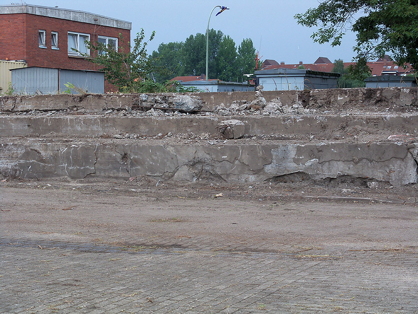 20. Mai 2015: Keinerlei Abrissaktivität. Nach Hinweisen soll ein Abriss zu aufwendig sein, unter anderem, da der Bereich sonst mit Spundwänden gegen den Wasserdruck des Hafens gesichert werden müsste. Wir bleiben dran...