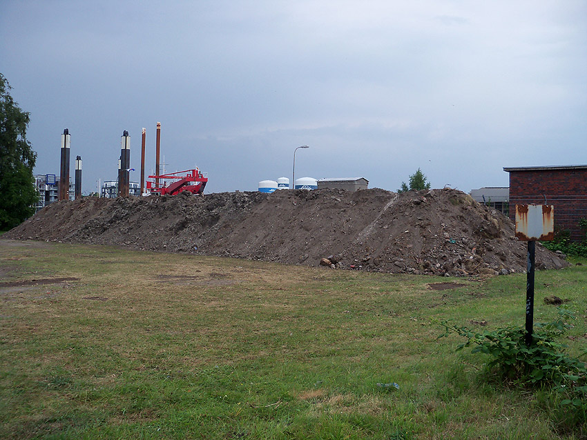 29. November 2014: Seltsam scheint sich die Lage am Tiefbunker Wiesbadenbrücke zu entwickeln: Hier wurde mittlerweile (Foto vom 23. November) wieder Erdreich fein säuberlich an den Bunker geböscht. Ist der Abriss erst einmal nach hinten geschoben worden oder was wird damit bezweckt? Wir bleiben dran.