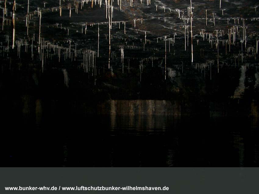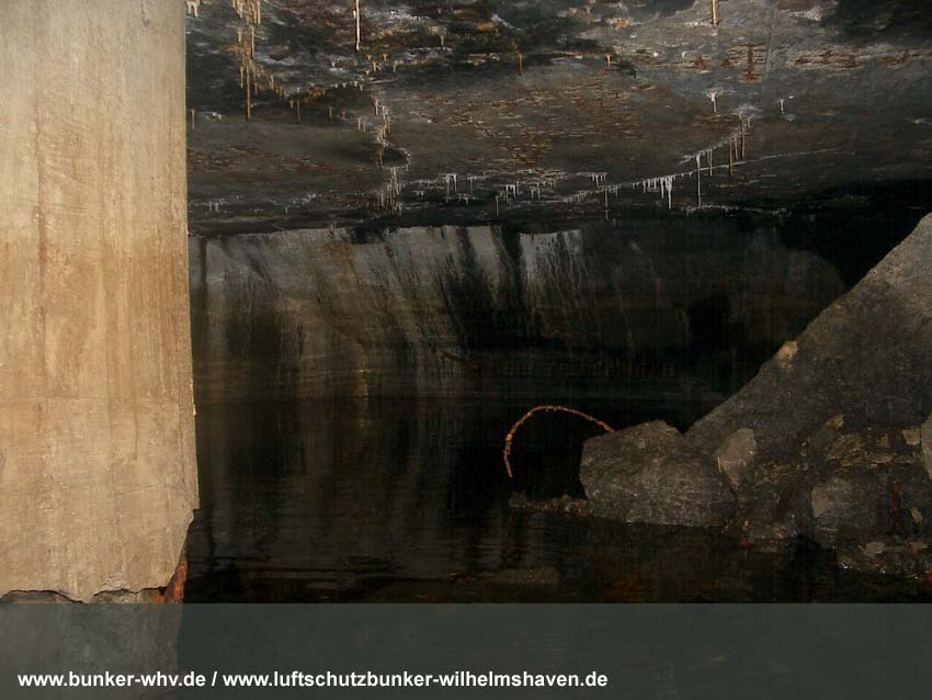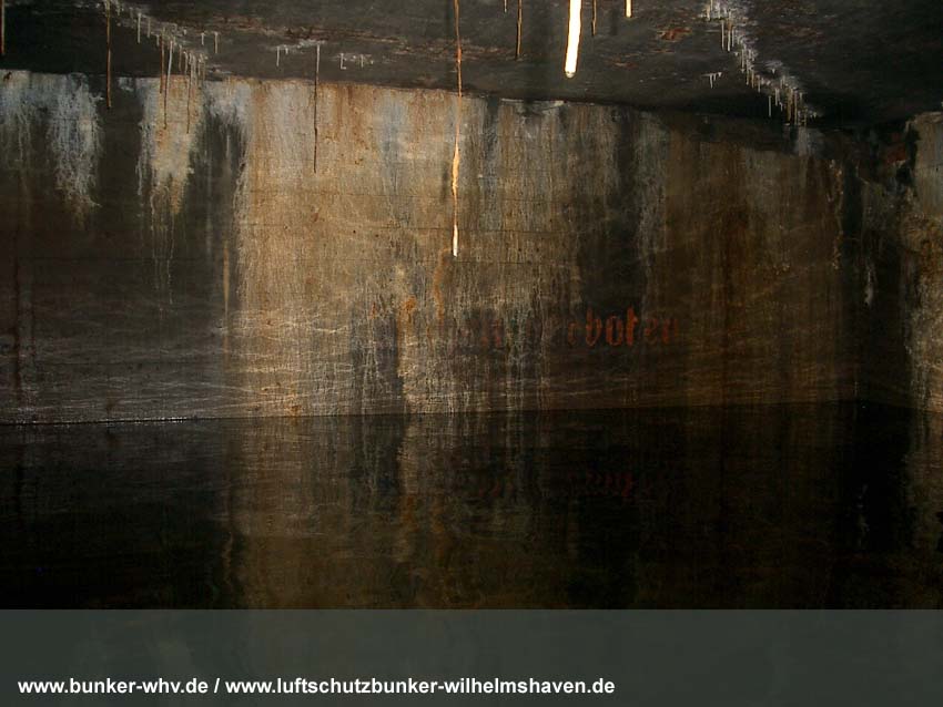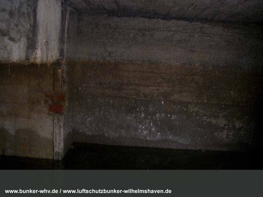 Warum wurde gerade hier auf der Wiesbadenbrücke ein Tiefbunker errichtet? Nicht nur, dass Wilhelmshaven ohnehin einen hohen Grundwasserspiegel hat. Gerade hier drückt das Wasser des Hafens von zwei, ja sogar wohl drei bzw. vier Seiten besonders an die Bunkerwände. Der Bau kann nur erklärbar sein durch zwei Punkte. 1. Tarnung, da im Krieg ohnehin nur spärliche oberirdische Bebauung auf der Wiesbadenbrücke existierte. 2. Freies Schussfeld für mittlere Flak, die nach Hinweisen zu Zeit des Bunkerbaues hier stationiert war, später dann an einen anderen Standort verbracht wurde.